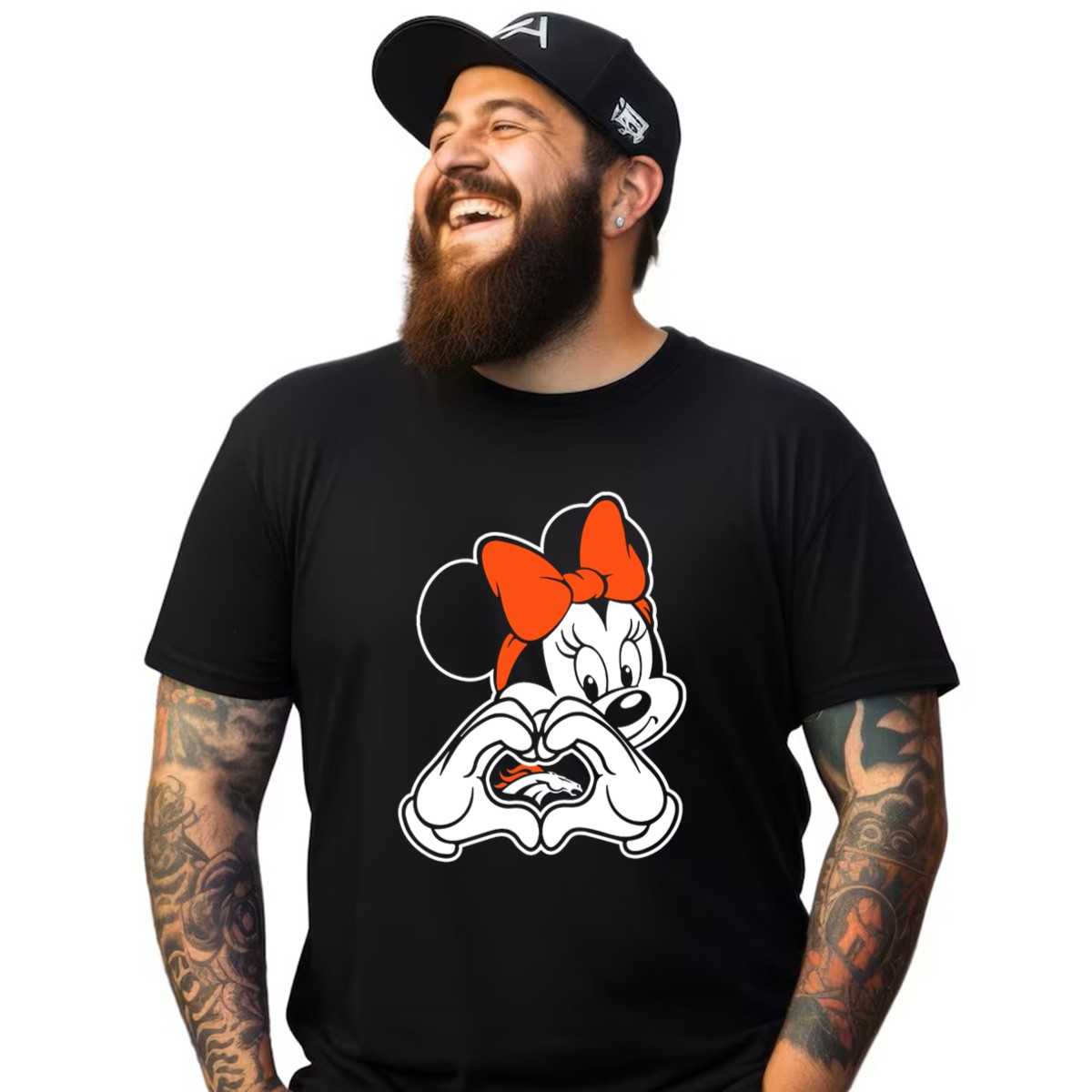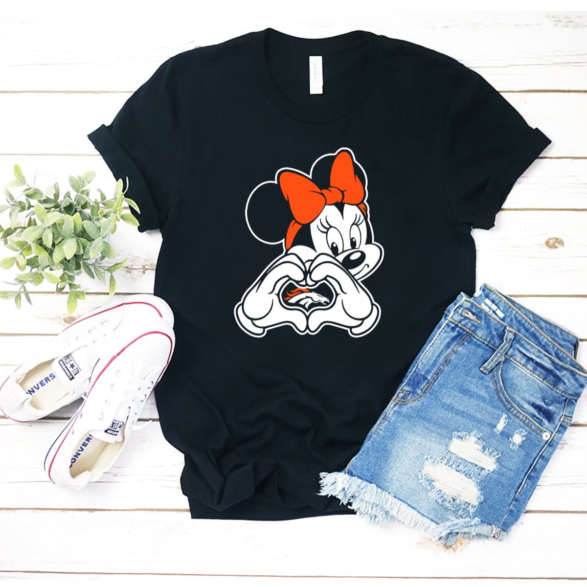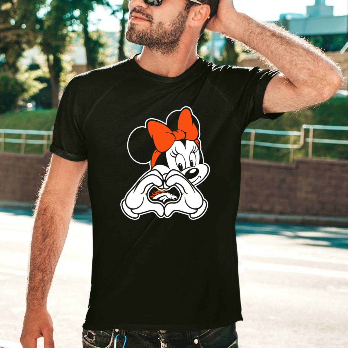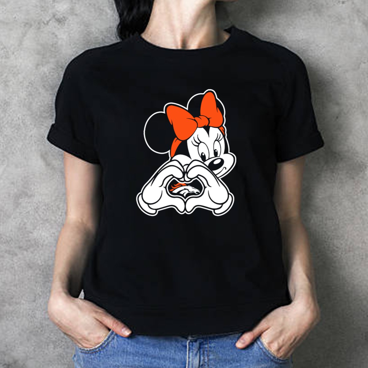 Show off your love for the Denver Broncos with our adorable Minnie Mouse Heart Hands T-shirt! Perfect for fans of all ages, this fun and playful design combines the magic of Disney with your team spirit. Ideal for casual outings, themed events, or just lounging at home, this shirt is a unique way to celebrate your fandom while staying comfortable and stylish. Made with care in the USA, it’s a must-have for any true Broncos supporter!