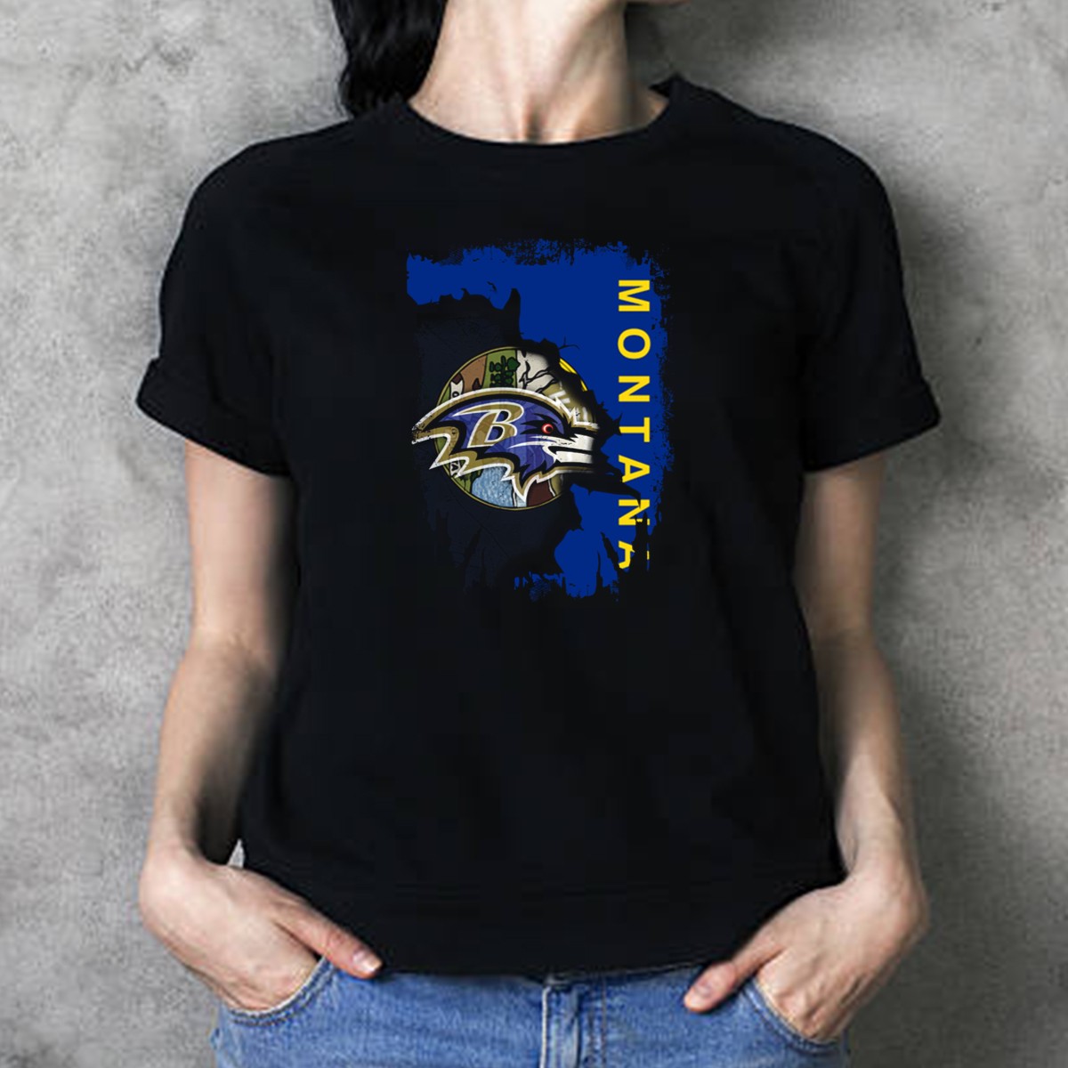 Show your love for the great outdoors and your favorite football team with our Montana with Baltimore Ravens Logo and Nature Scene T-Shirt. This fan-made design is perfect for avid Ravens supporters who appreciate nature and want to showcase their team pride in a stylish way. Whether you’re heading to a game, enjoying a weekend hike, or just relaxing at home, this shirt combines comfort and style for every casual occasion.