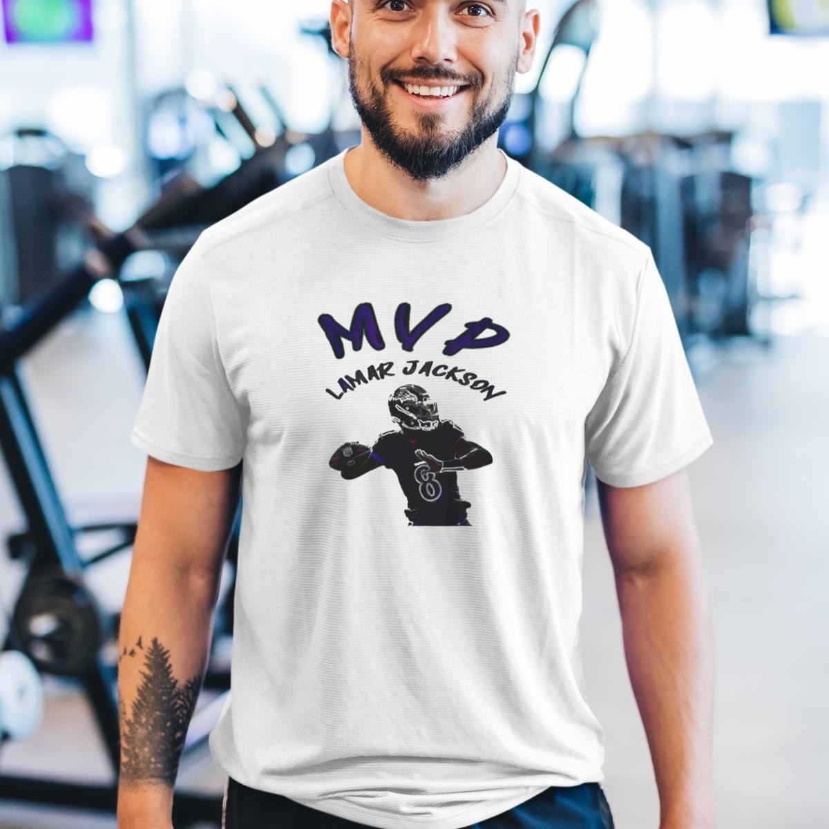 Show your support for the MVP, Lamar Jackson, with this stylish Baltimore Ravens Quarterback T-Shirt! Perfect for die-hard fans, this shirt blends comfort and team spirit, making it ideal for casual wear, themed events, or just cheering on your favorite player during game day. With its unique fan-made design printed in the USA, this T-shirt is a must-have for any Ravens enthusiast looking to showcase their pride.