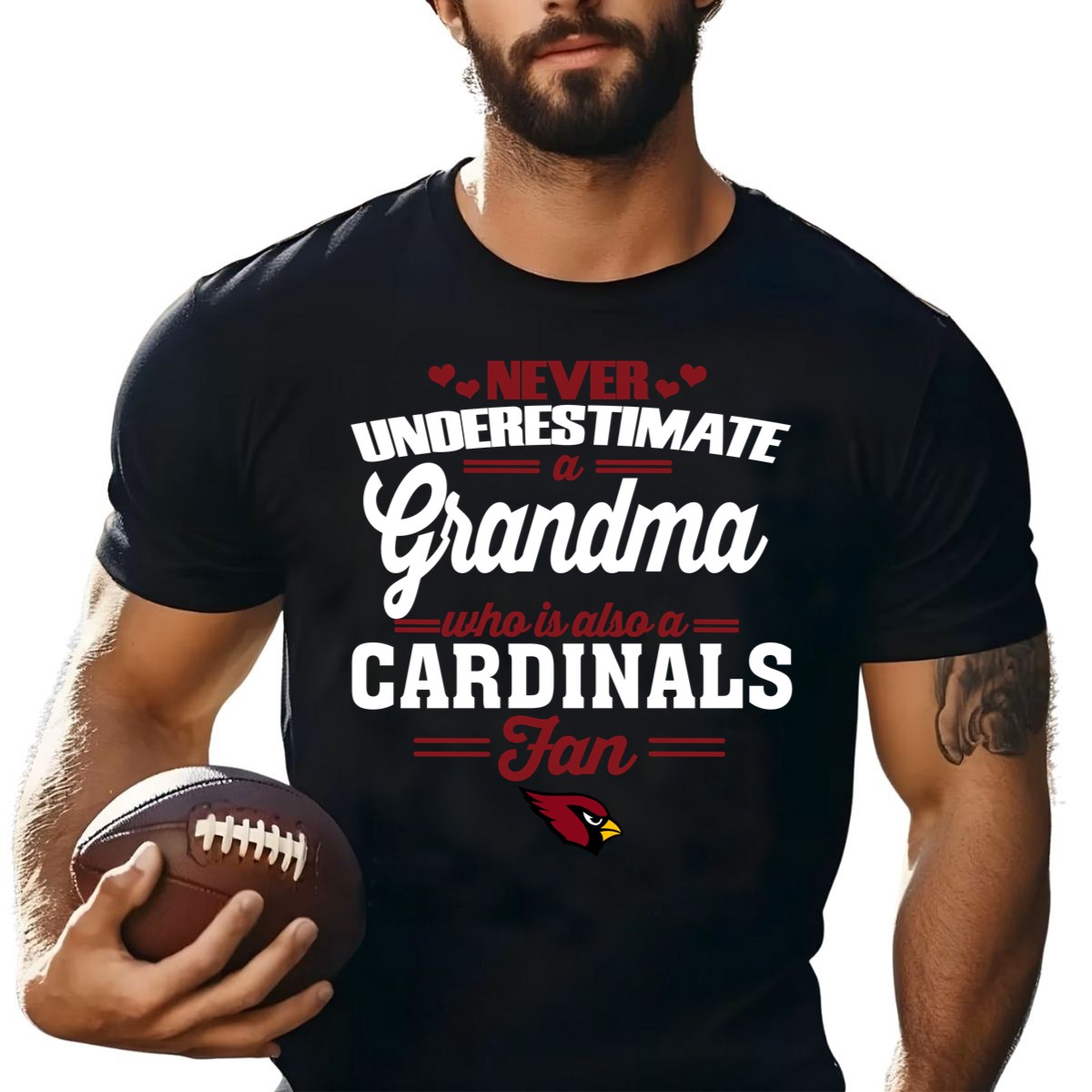 Show off your pride as a passionate Arizona Cardinals fan with our “Never Underestimate A Grandma Who Is Also An Arizona Cardinals Fan” T-shirt. Perfect for grandmothers who love to cheer on their team, this shirt combines comfort and style for any casual occasion. Whether you’re heading to a game, hosting a themed gathering, or just enjoying a relaxed day out, this fan-made design, proudly printed in the USA, is a unique way to celebrate your love for both family and football.