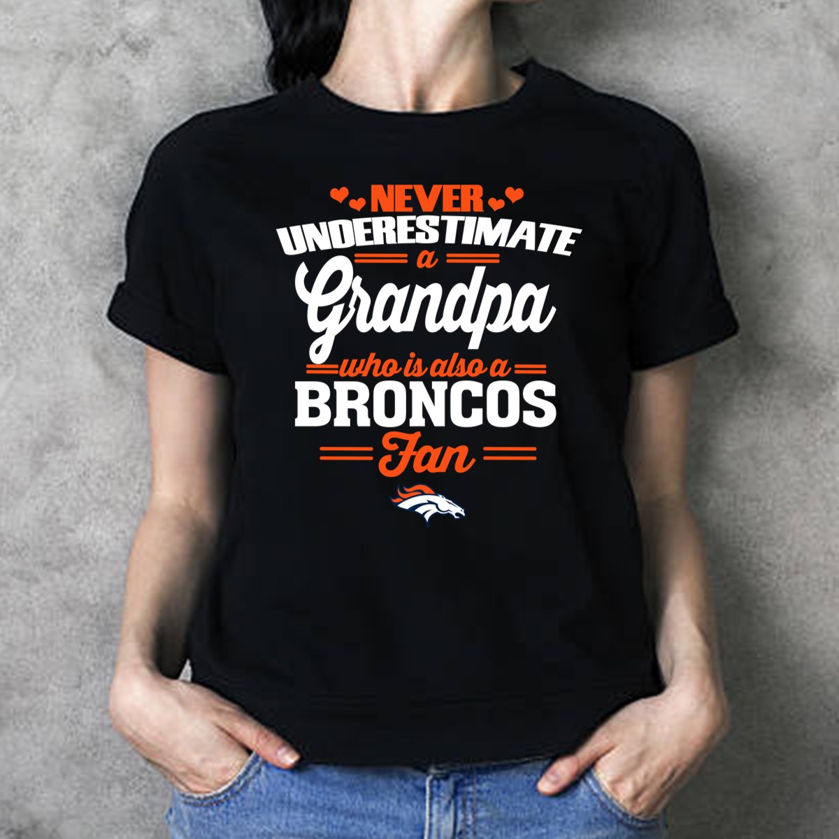 Celebrate the spirit of grandparenthood and sports fandom with our “Never Underestimate A Grandpa Who Is Also A Broncos Fan” T-shirt. Perfect for proud grandpas who cheer on their favorite football team, this shirt is an ideal choice for casual outings, themed events, or simply lounging at home. Made with a unique fan-made design printed in the USA, it combines comfort and style, making it a must-have for every Broncos enthusiast.