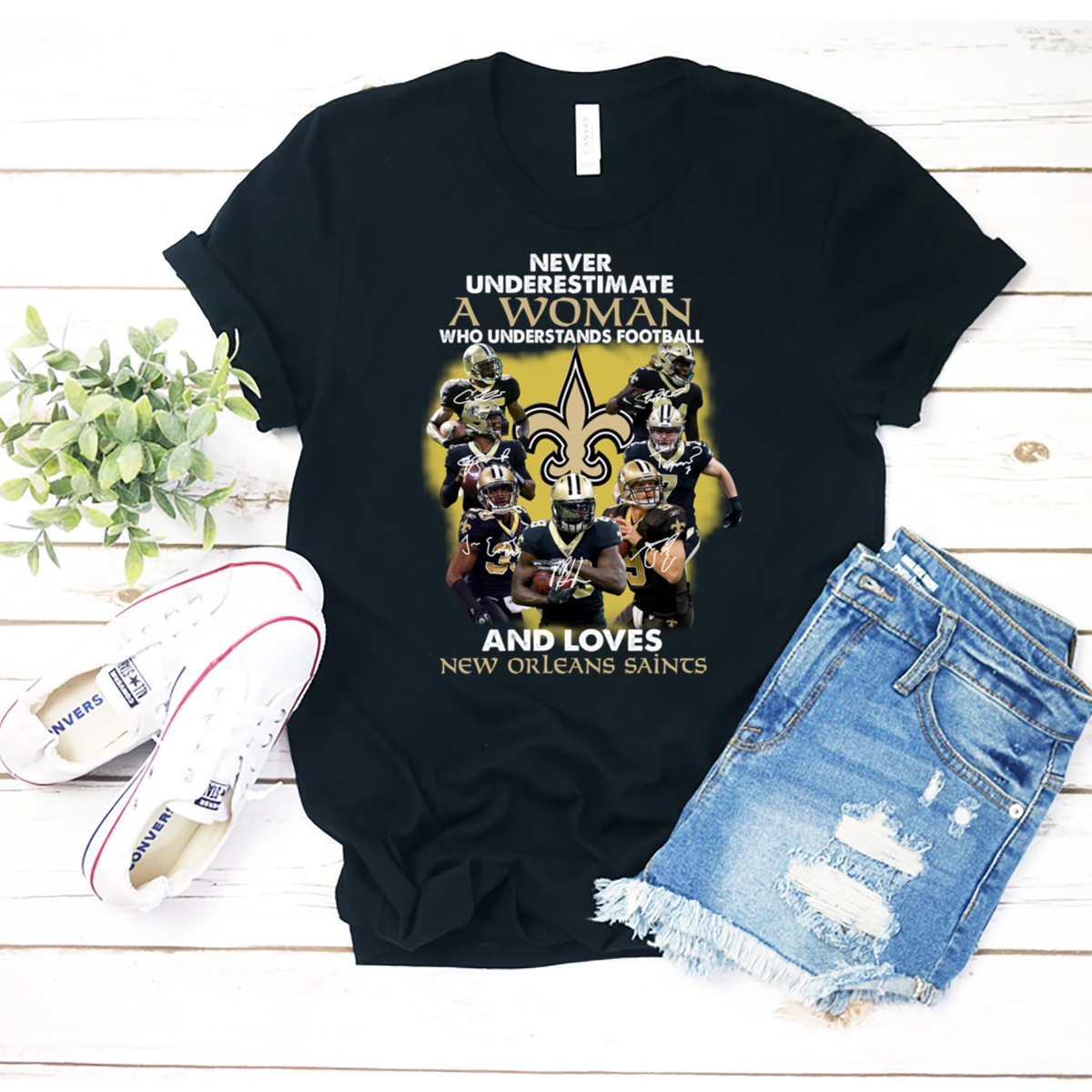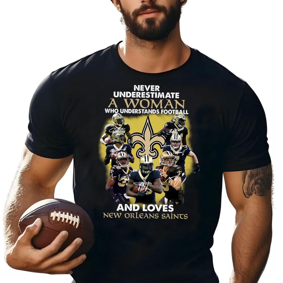 Celebrate your passion for football and your love for the New Orleans Saints with our “Never Underestimate A Woman Who Understands Football” T-shirt. This stylish and comfortable Gildan 5000 Unisex T-Shirt is perfect for dedicated fans who want to showcase their team pride while making a bold statement. Ideal for casual outings, themed events, or daily wear, this shirt is a must-have for any woman who knows her game and stands strong in her fandom.