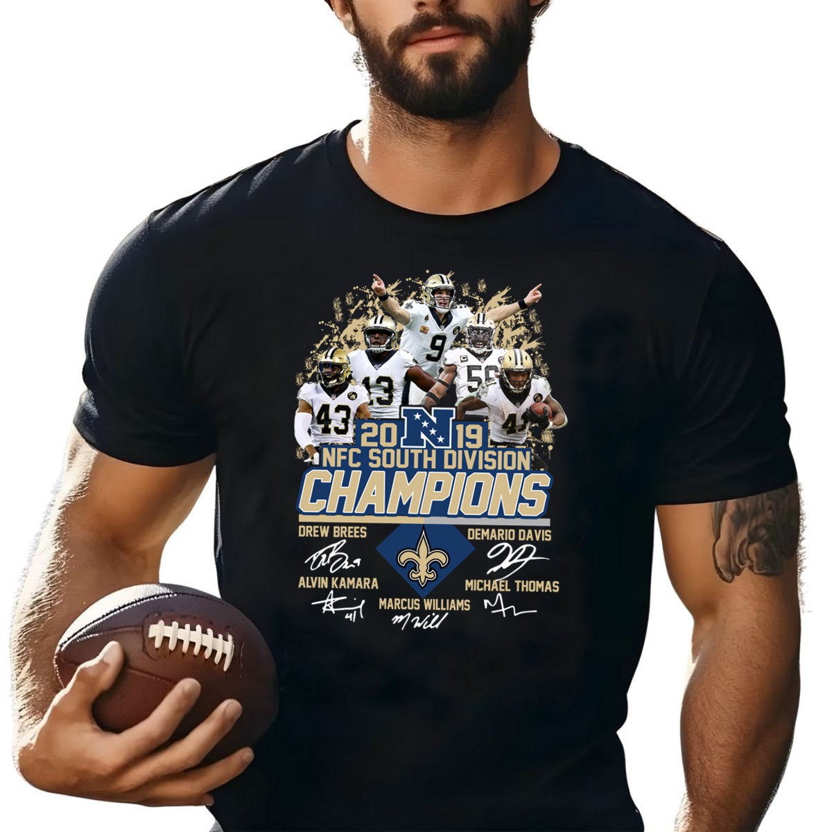 Celebrate the triumph of the New Orleans Saints with this fan-made 2019 NFC South Division Champions T-shirt! Perfect for die-hard fans and casual wear enthusiasts alike, this classic tee showcases your team pride in style. Whether you’re heading to a game, a themed event, or just enjoying a relaxed day out, this shirt is designed for comfort and durability, making it a must-have addition to your collection.