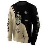 Introducing the New Orleans Saints Achmed Skull Gold Black AOP Sweatshirt, a bold and edgy addition to any streetwear collection. Perfect for die-hard fans or anyone looking to make a statement, this sweatshirt is ideal for casual outings, game days, or just lounging around in style. Its unique all-over print sets you apart from the crowd while providing the comfort you crave.