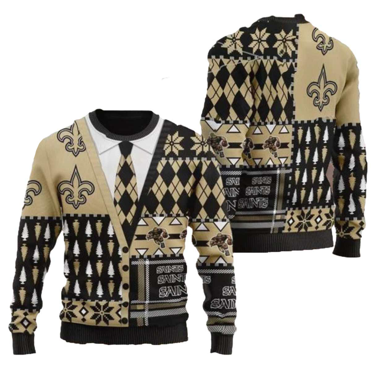 Show off your team spirit this winter with our New Orleans Saints American Football Team Cardigan Style Ugly Sweater! Perfect for die-hard fans or anyone looking to add a touch of festive fun to their wardrobe, this cozy sweater is ideal for game days, holiday parties, or lounging at home while cheering on your favorite team. With its unique design, you’ll be the life of the party while staying warm and stylish!