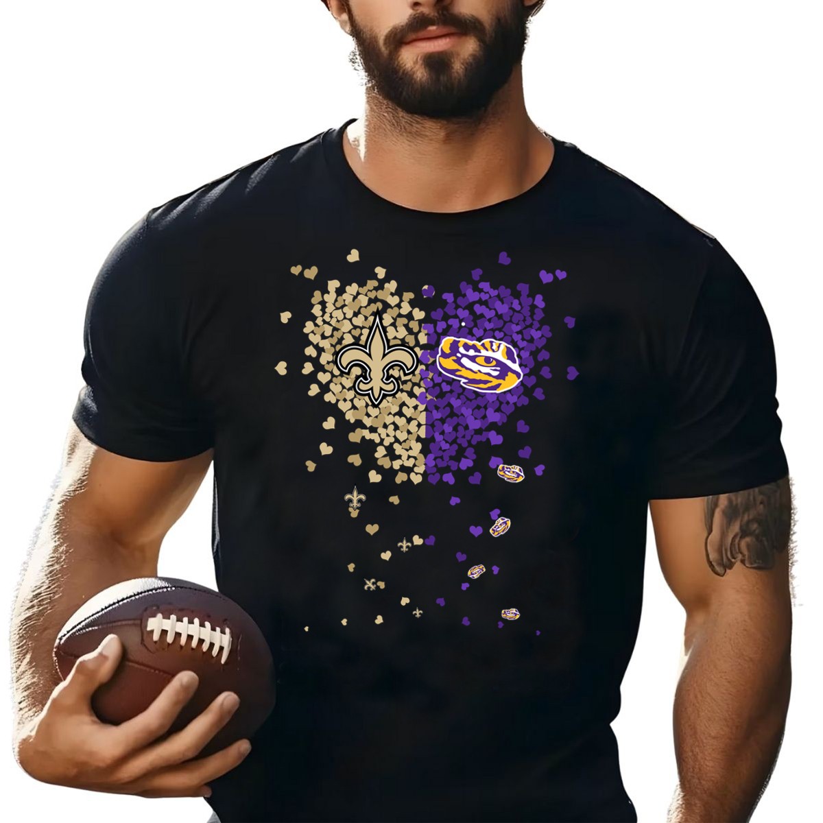 Show your love for two iconic teams with our New Orleans Saints and LSU Tigers Love T-shirt! Perfect for devoted fans, this shirt celebrates the spirit of Louisiana’s football culture, making it ideal for game days, casual outings, or themed events. Crafted for comfort and style, this fan-made design is printed in the USA, ensuring you stand out while cheering for your favorite teams.