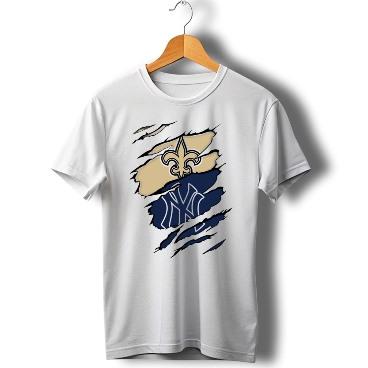 Celebrate the perfect fusion of two iconic teams with our New Orleans Saints and New York Yankees Logo Fusion T-Shirt! This fan-made design is crafted for die-hard supporters of both franchises, making it ideal for casual outings, themed events, or just showing off your team spirit in everyday life. With its unique blend of bold logos, this shirt is not only a statement piece but also a testament to your love for sports, printed right here in the USA.