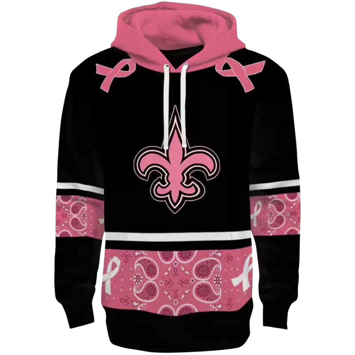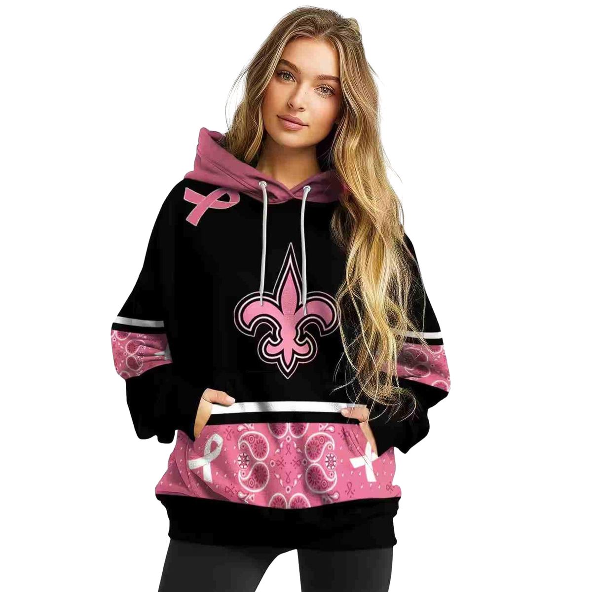 Show your support for a great cause with the New Orleans Saints Awareness Ribbon Black Pink All-Over Print Hoodie. Designed for fans and advocates alike, this cozy yet lightweight hoodie is perfect for daily wear or casual outdoor activities during the cooler months. With its unique all-over print and relaxed fit, it’s a standout piece that combines style with purpose.