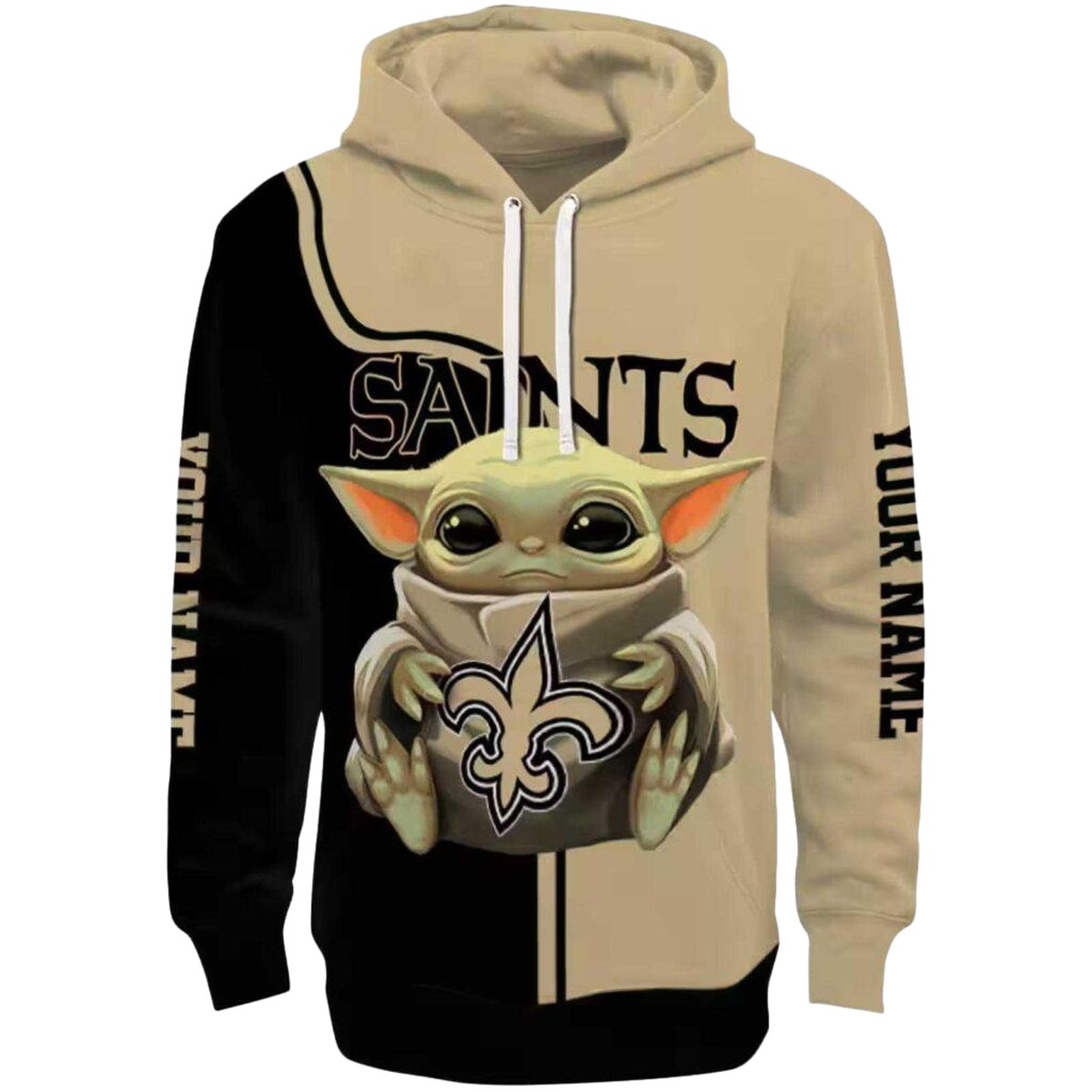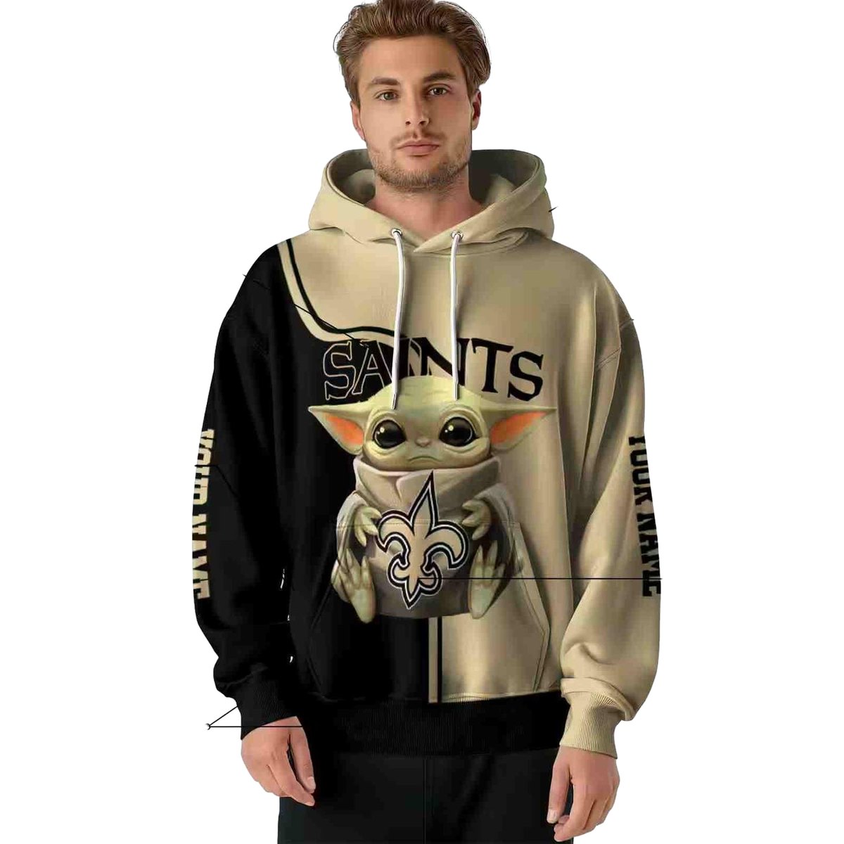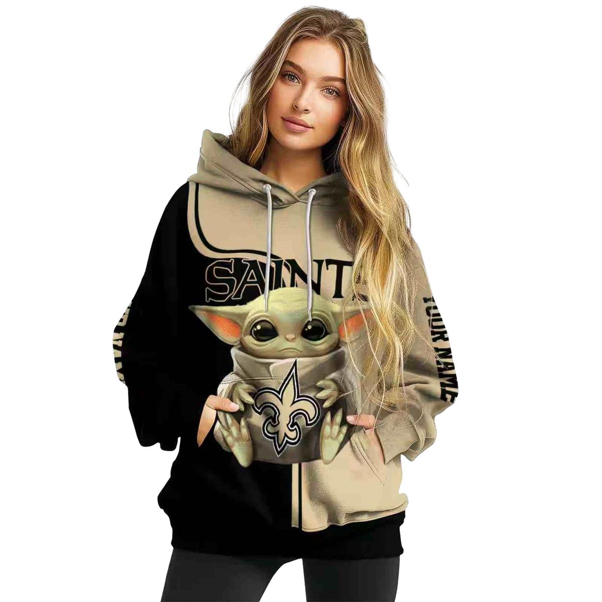 Embrace your love for the New Orleans Saints with this uniquely designed Baby Yoda Hug Logo hoodie. Perfect for fans looking to showcase their team spirit, this cozy piece is ideal for daily wear or casual outings during the winter months. Its eye-catching all-over print adds a fun twist to your wardrobe, making it a standout choice for both men and women.