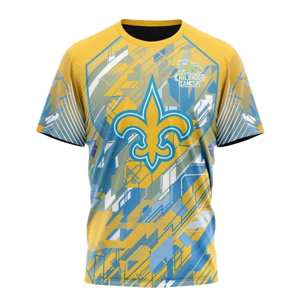 Celebrate your love for the New Orleans Saints while supporting a great cause with our Childhood Cancers AOP T-Shirt. Perfect for fans of all ages, this shirt is ideal for game days, casual outings, or simply making a statement. Its unique all-over print showcases vibrant graphics that stand out and let you express your team spirit and commitment to a worthy cause.