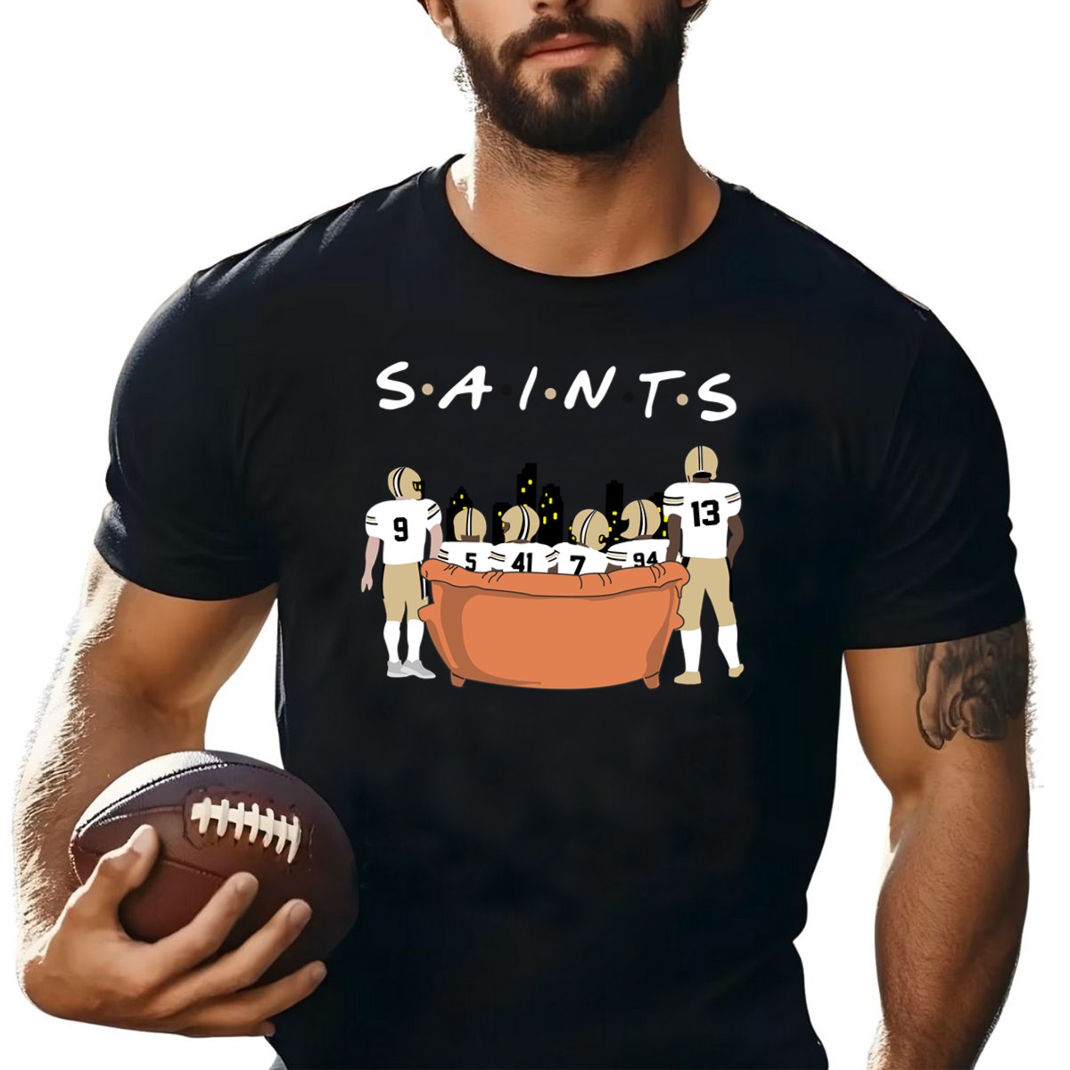 Show off your love for the New Orleans Saints and the iconic Friends TV show with this fan-made graphic printed T-shirt! Perfect for die-hard fans, casual outings, or themed events, this shirt combines the best of both worlds, allowing you to express your passion in style. Made for comfort and durability, it’s an essential addition to any wardrobe, making it ideal for all-season wear.