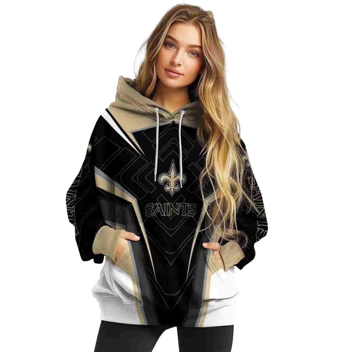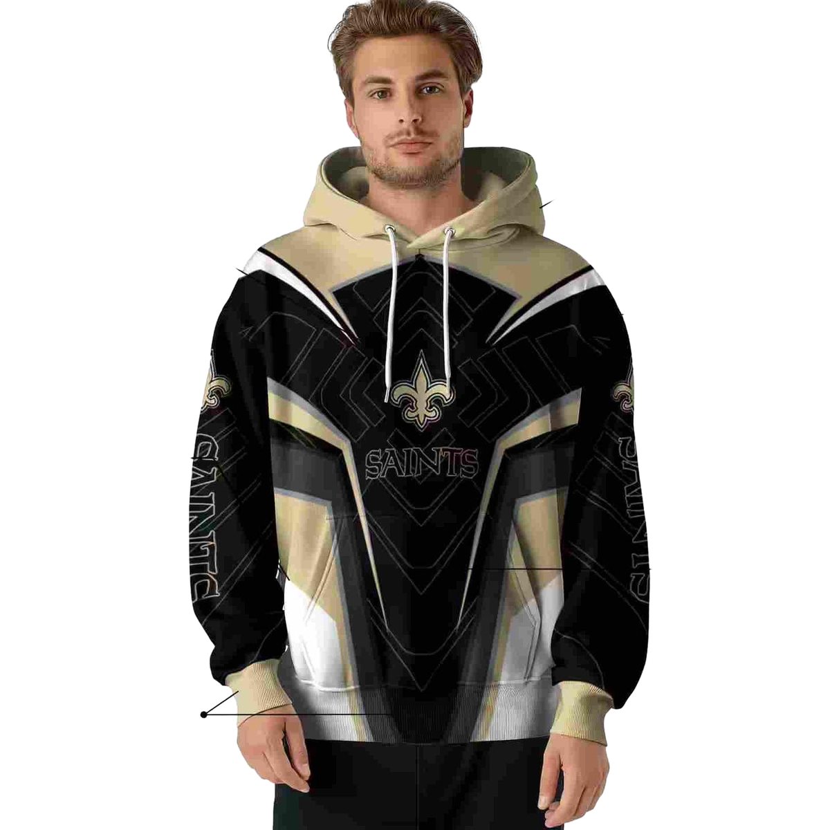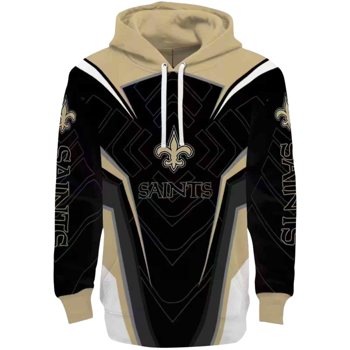 Step into the future of fashion with our New Orleans Saints Futuristic Pattern Gold Black All-Over Print Hoodie, designed for die-hard fans and trendsetters alike. This hoodie is perfect for casual outings, game days, or simply lounging in style. Its unique all-over print sets you apart, making it a standout piece in any wardrobe.