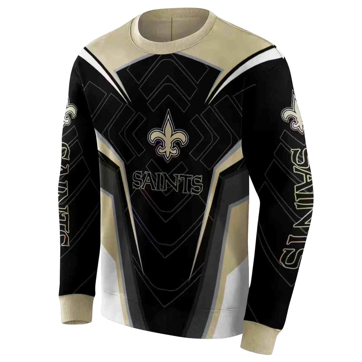 Elevate your streetwear game with our New Orleans Saints Futuristic Pattern Gold Black AOP Sweatshirt. Perfect for fans and fashionistas alike, this cozy yet stylish piece is ideal for casual outings, lounging at home, or hitting the gym. With its eye-catching all-over print, it effortlessly combines team spirit with modern design, making it a must-have for any New Orleans Saints enthusiast.
