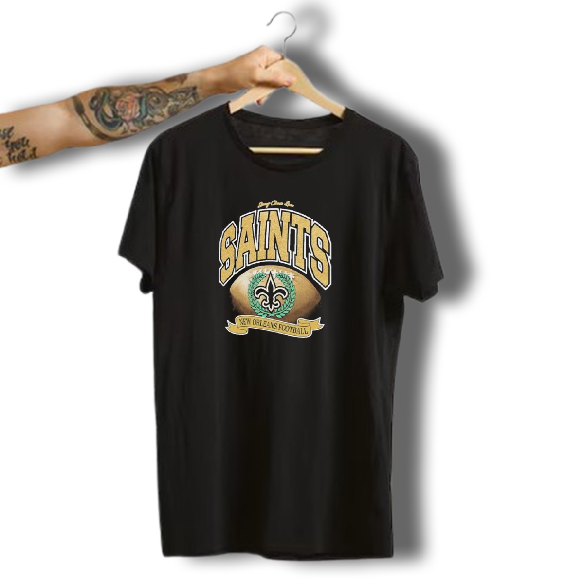 Show your unwavering support for the New Orleans Saints with this Glory Glitter Retro Football Fleur De Lis T-shirt. Perfect for die-hard fans and casual wearers alike, this shirt combines style and comfort, making it ideal for game day, themed events, or everyday activities. The unique fan-made design, printed in the USA, captures the spirit of the Saints with a touch of retro flair that stands out in any crowd.