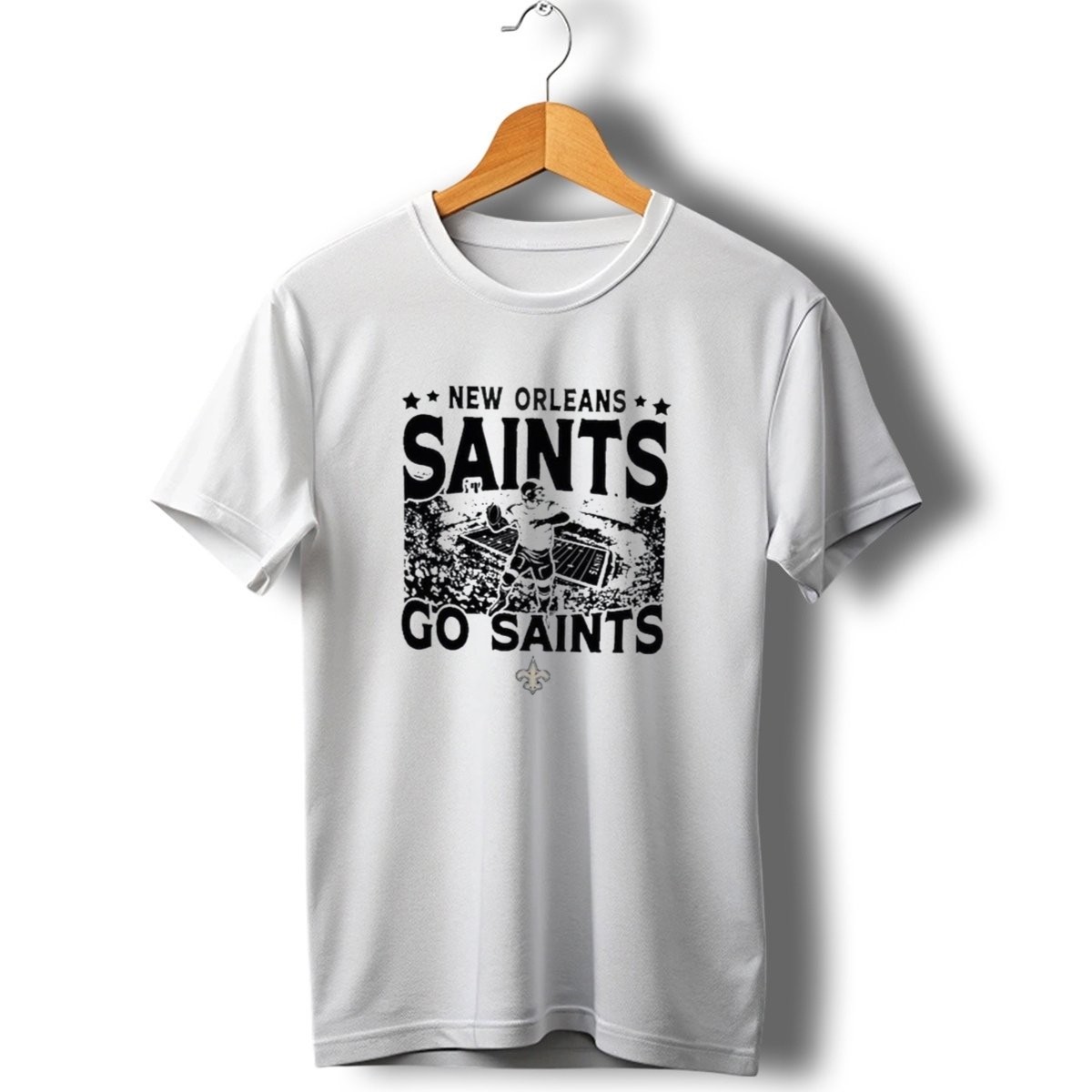 Show your unwavering support for the New Orleans Saints with our vintage-inspired “Go Saints” stadium football T-shirt. Perfect for fans of all ages, this classic tee is ideal for casual outings, game day celebrations, or themed events. Crafted with a fan-made design printed right here in the USA, it combines style and comfort, making it a must-have addition to your wardrobe.