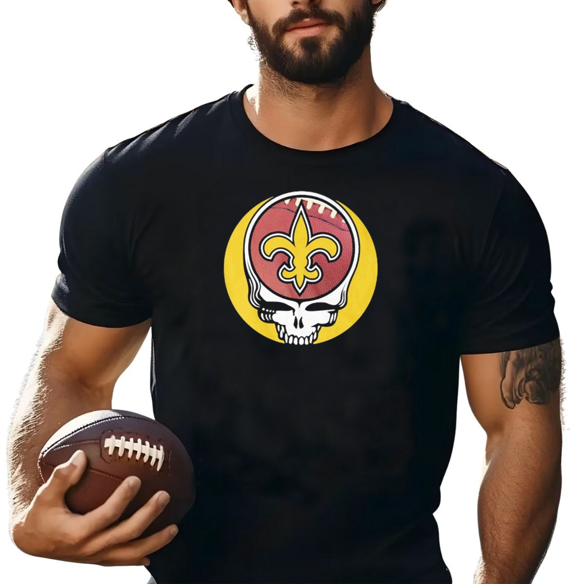 Show off your love for the New Orleans Saints and the iconic Grateful Dead with this unique fan-made T-shirt! Perfect for die-hard football enthusiasts and music lovers alike, this classic tee is ideal for casual wear, themed events, or simply lounging around. The eye-catching skull logo design is printed in the USA, making it a standout addition to your wardrobe that celebrates both your team spirit and your appreciation for timeless art.