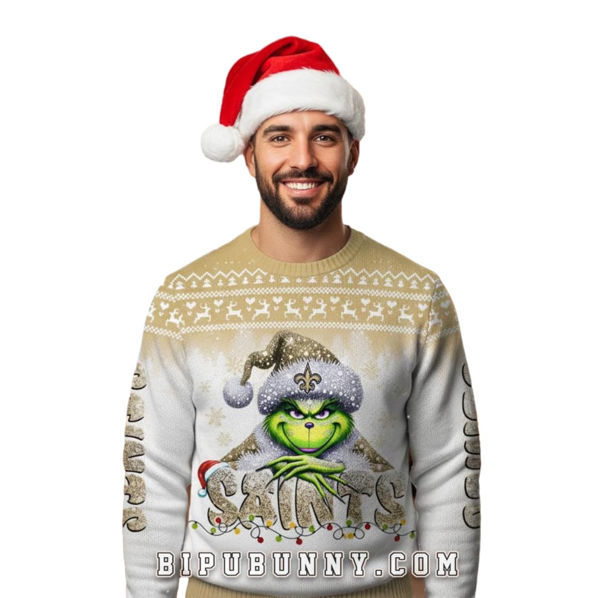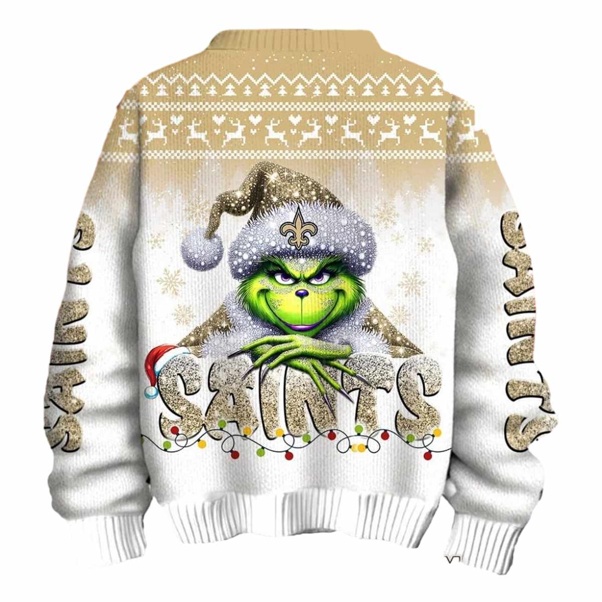 Get ready to bring some holiday cheer with our New Orleans Saints Grinch Santa Claus Funny Ugly Sweater! Perfect for die-hard football fans and holiday enthusiasts alike, this sweater is ideal for game days, festive parties, or just lounging at home while sipping hot cocoa. Its hilarious design adds a playful twist to your winter wardrobe, making it a unique statement piece that’s sure to get everyone in the spirit!