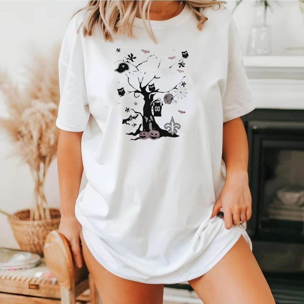 Show off your love for the New Orleans Saints while celebrating the spooky season with our fan-made Halloween Tree T-shirt! Perfect for die-hard fans and casual wearers alike, this shirt combines team spirit with festive flair, making it an ideal choice for themed events, game days, or just lounging around. Proudly printed in the USA, this classic fit T-shirt ensures comfort and style all season long.