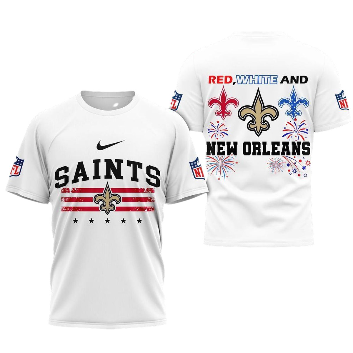 Celebrate the spirit of Independence Day with our New Orleans Saints Happy 4th Of July AOP T-shirt! Perfect for die-hard fans and anyone looking to add a touch of festive flair to their casual wardrobe, this shirt combines team pride with patriotic vibes. Whether you’re at a barbecue, watching the game, or just out and about, this unique all-over print design ensures you stand out in style.
