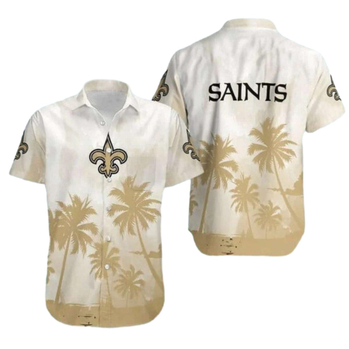 New Orleans Saints Hawaiian Shirt White Gold Palm Design