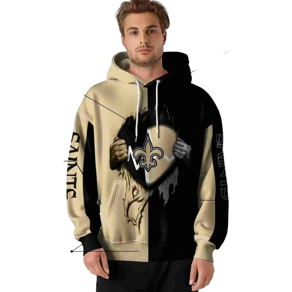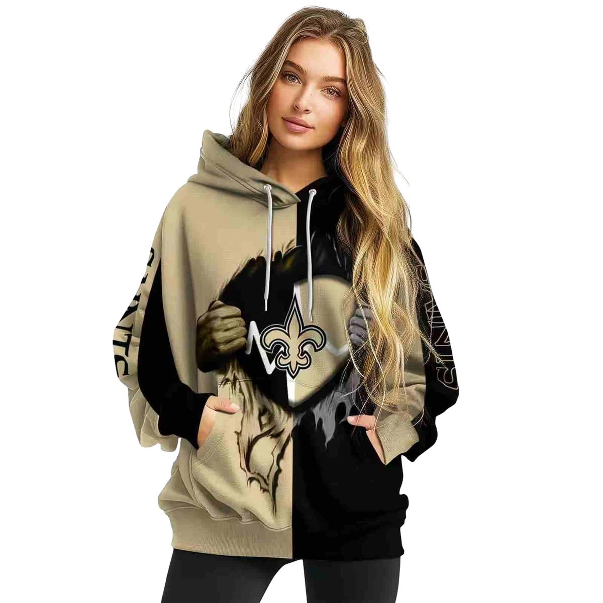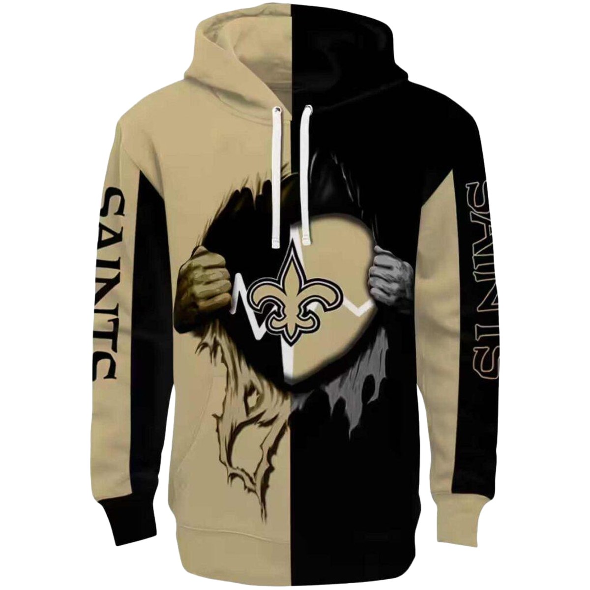 New Orleans Saints Heartbeat Graphic Gold Black AOP Hoodie