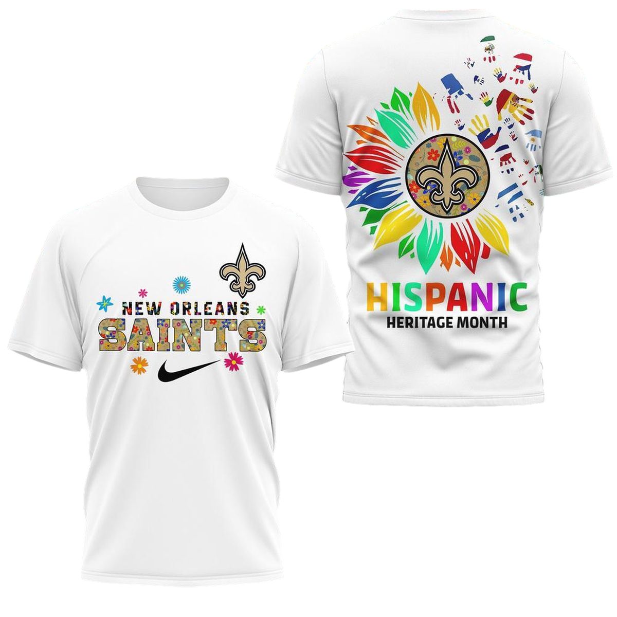 Celebrate culture and community with our New Orleans Saints Hispanic Heritage Month AOP T-shirt! Perfect for fans who want to showcase their pride in a stylish and comfortable way, this shirt is ideal for casual outings, game days, or just lounging around. Its unique all-over print design makes it a standout piece in any wardrobe, ensuring you turn heads while supporting your team.
