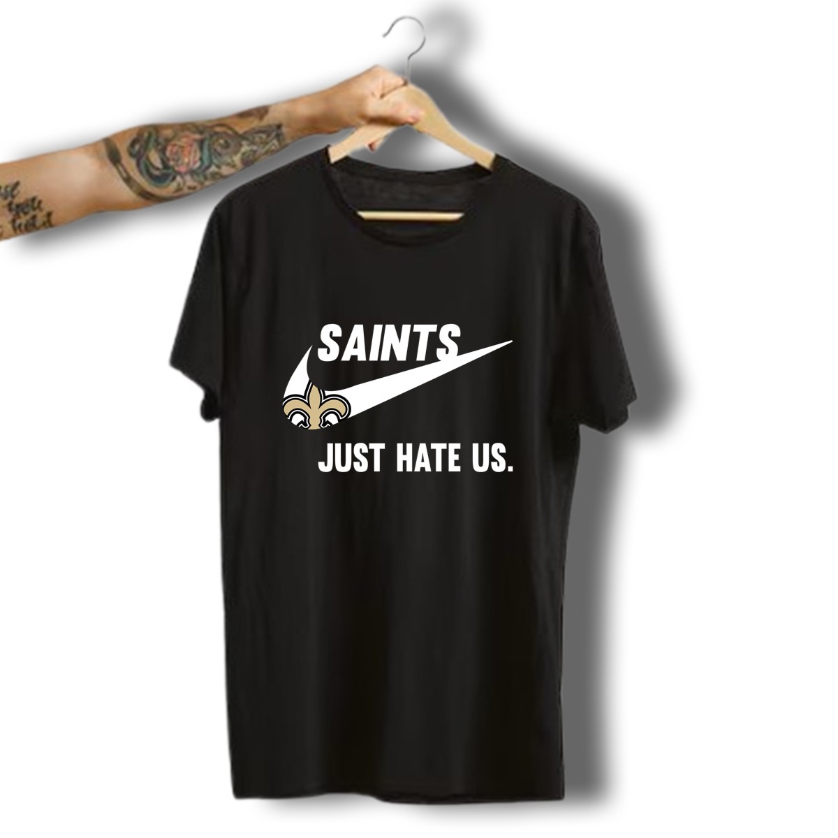 Show your team spirit and sense of humor with our New Orleans Saints Just Hate Us Limited Edition T-Shirt! Perfect for die-hard fans and casual wearers alike, this shirt is ideal for game days, casual outings, or themed events where you want to stand out. Made with a unique fan-made design printed in the USA, it’s a playful way to express your loyalty to the Saints while making a bold statement.