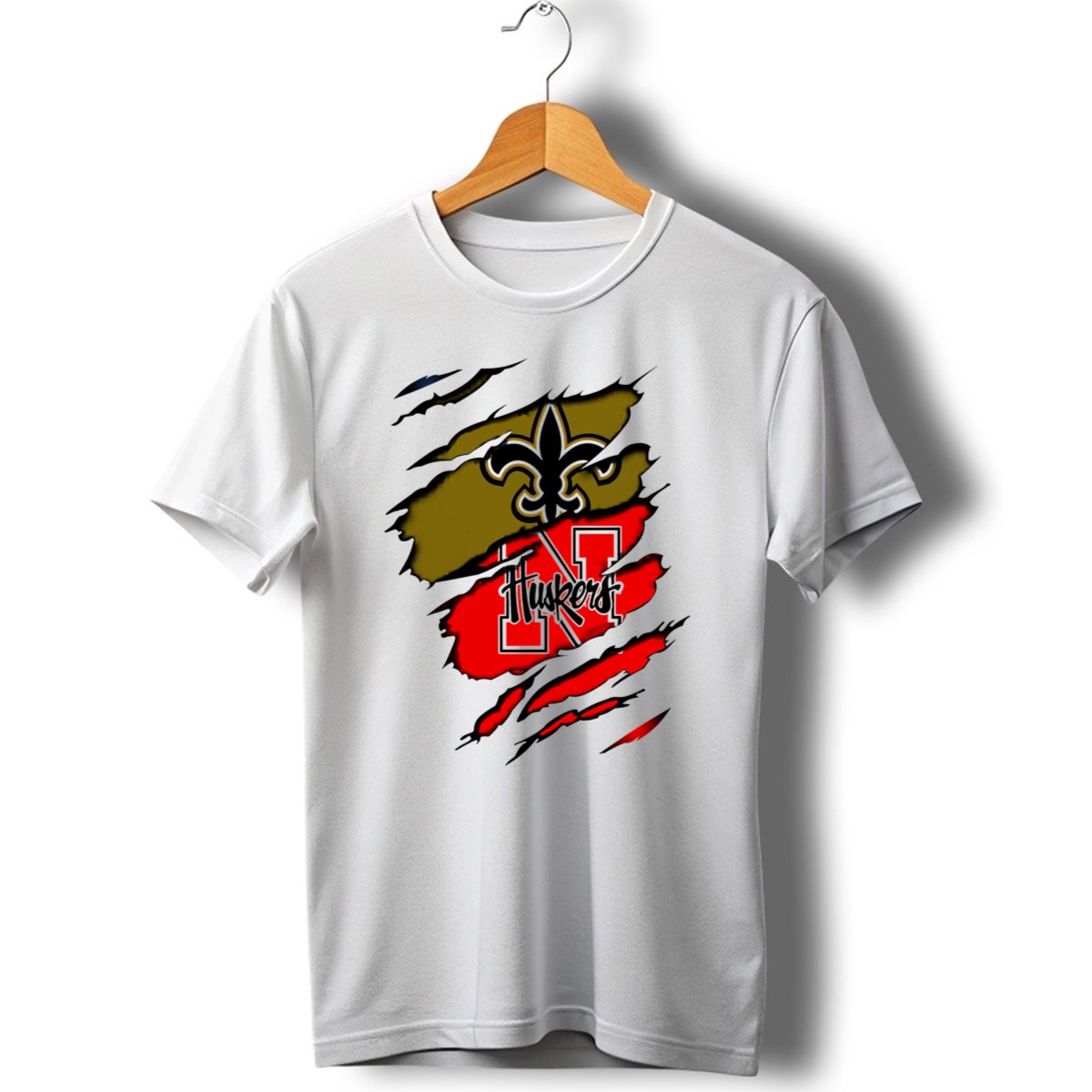 Show your team spirit with the New Orleans Saints Nebraska Huskers Claw Marks T-Shirt! This fan-made design is perfect for dedicated supporters who want to showcase their love for both teams. Whether you’re at a game, hanging out with friends, or just running errands, this shirt offers a unique blend of style and comfort that’s sure to turn heads. Made in the USA, it’s the ideal addition to any casual wardrobe.