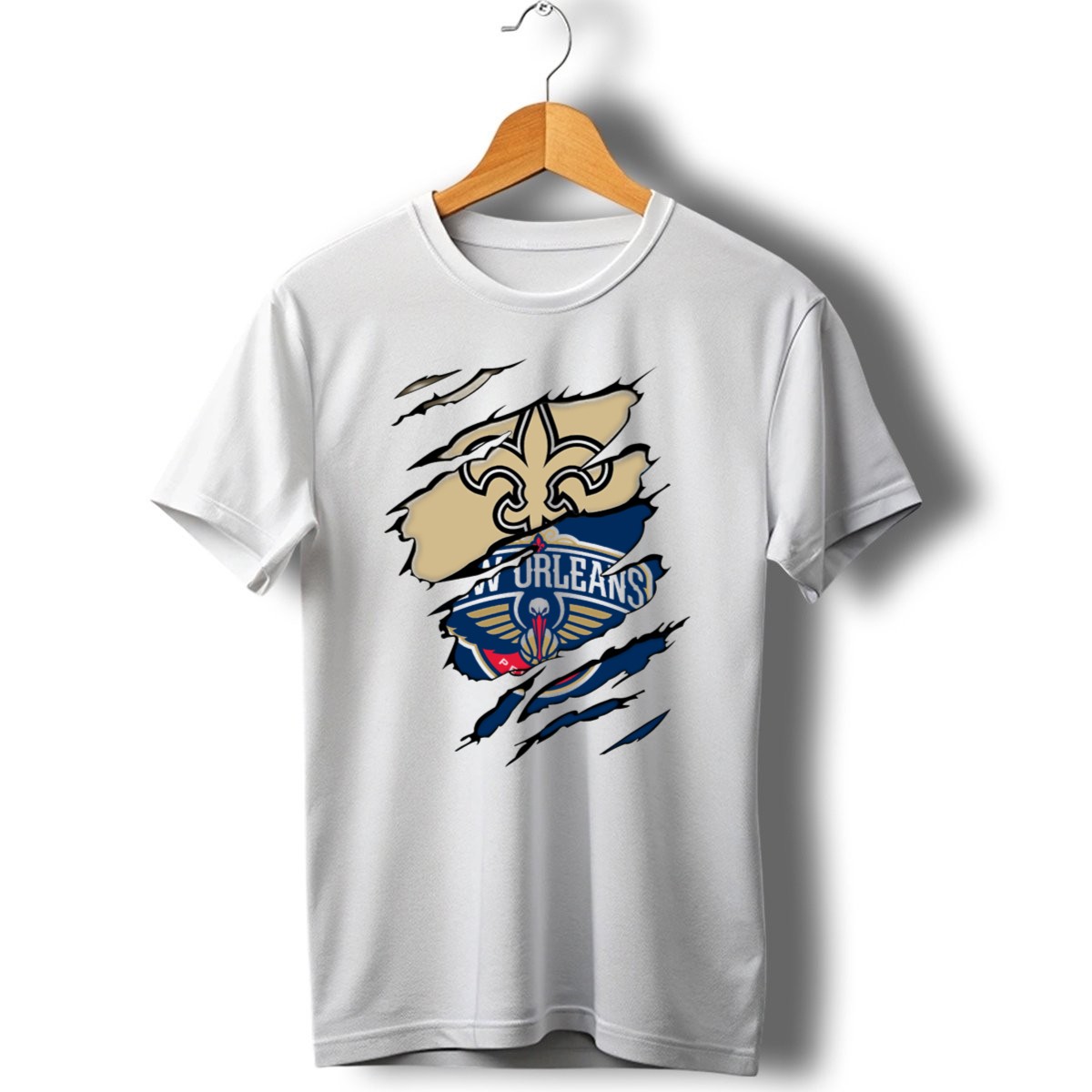 Show off your love for New Orleans with our fan-made Pelicans Fleur De Lis Rip T-Shirt! Perfect for die-hard fans and casual wearers alike, this classic tee is ideal for game days, themed events, or simply enjoying a day out in the city. Crafted for comfort and style, it features a unique design that celebrates the vibrant culture of New Orleans, making it a standout piece in any wardrobe.
