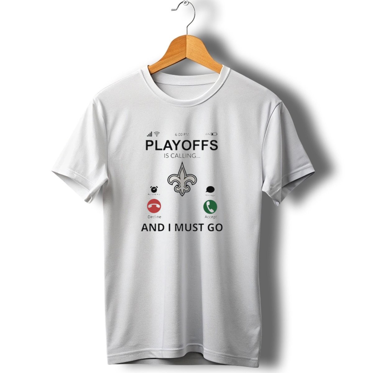 Gear up for the excitement of the New Orleans Saints playoffs with our exclusive “Playoffs Is Calling And I Must Go” T-shirt! This fan-made design is perfect for die-hard Saints supporters looking to showcase their team spirit during the thrilling football season. Crafted for comfort and style, this shirt is ideal for casual outings, themed events, or simply cheering on your favorite team from the comfort of your home. Celebrate your passion for the Saints with a shirt that embodies the heart of New Orleans football!