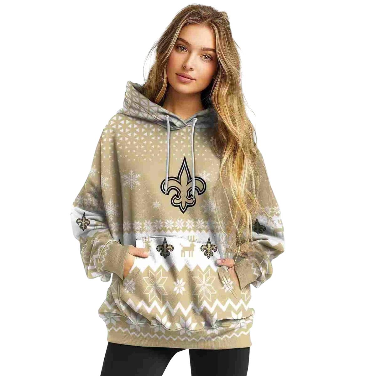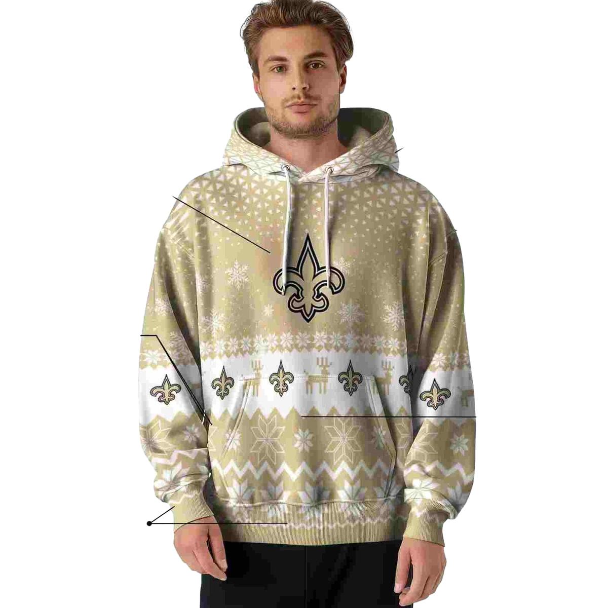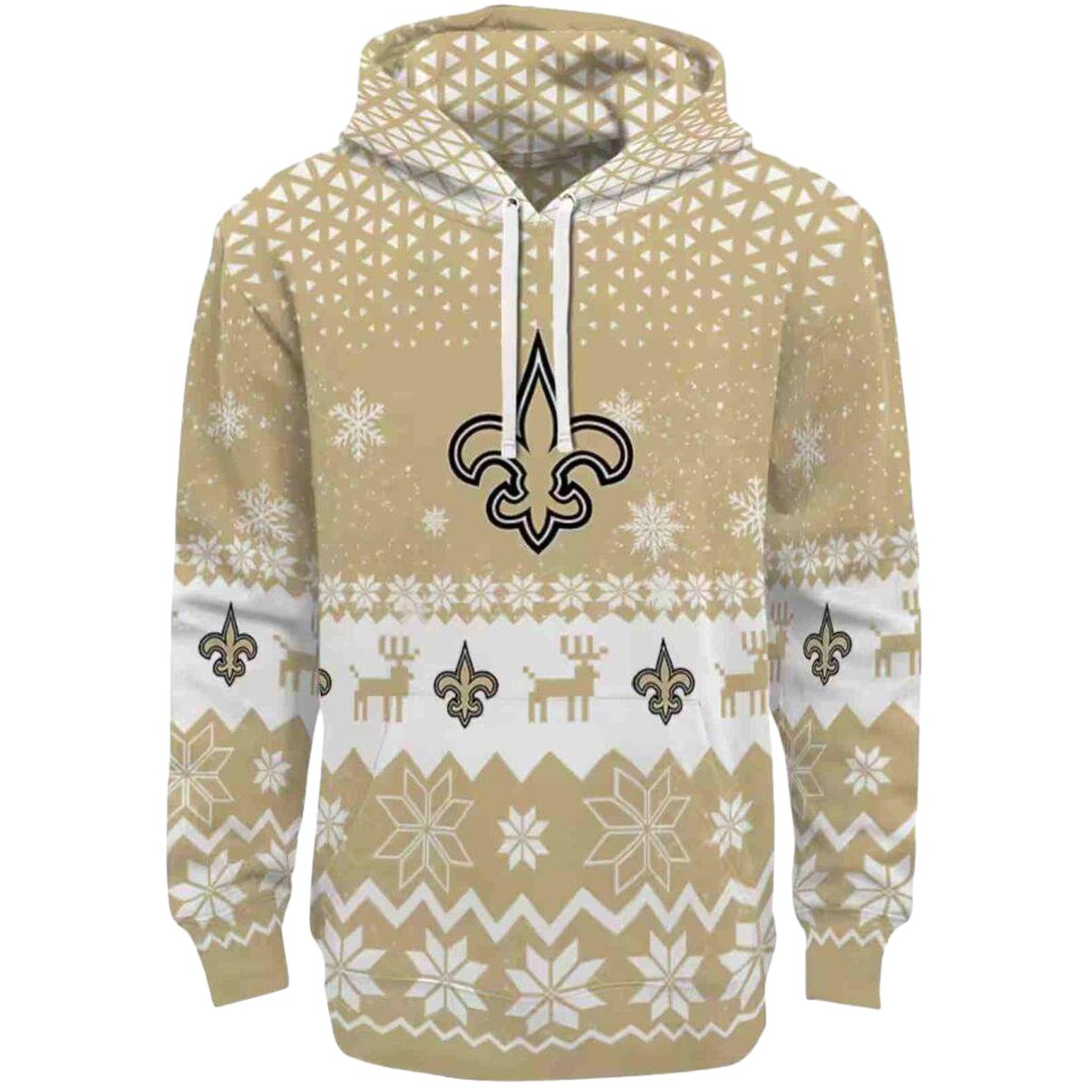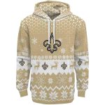 New Orleans Saints Reindeer Motif Christmas Gold AOP Hoodie