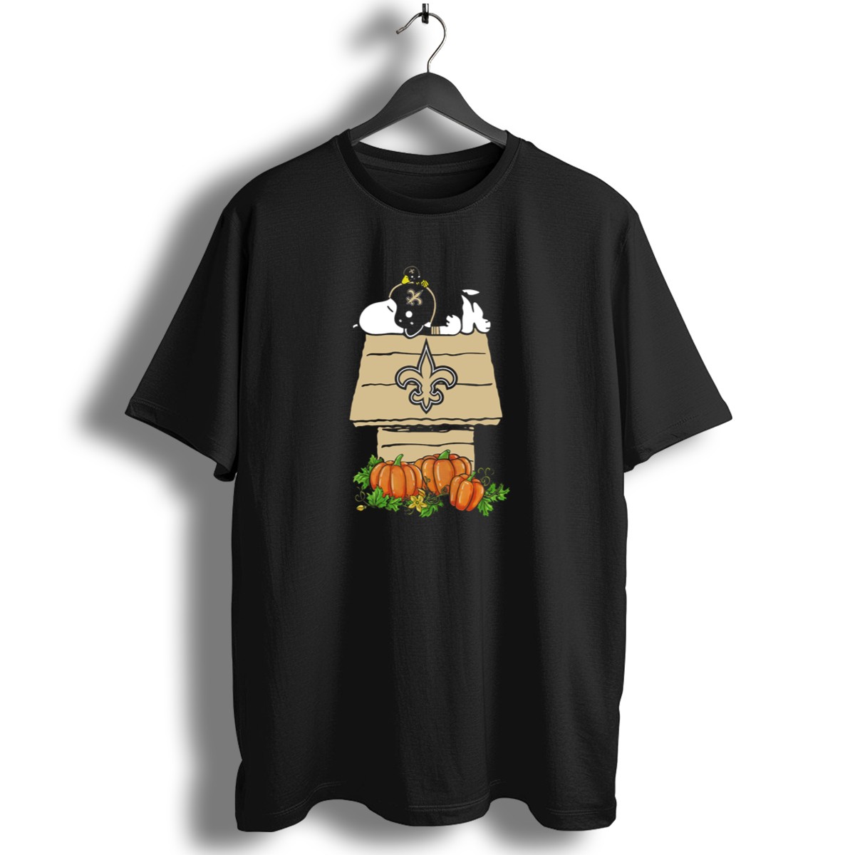 Embrace your love for the New Orleans Saints with our fan-made Snoopy Doghouse Pumpkin Patch T-Shirt! Perfect for die-hard fans and casual wear enthusiasts alike, this unique design brings together the spirit of game day and the charm of the beloved Peanuts characters. Ideal for themed events, casual outings, or just lounging around, this shirt is a must-have for anyone looking to showcase their team pride with a playful twist.