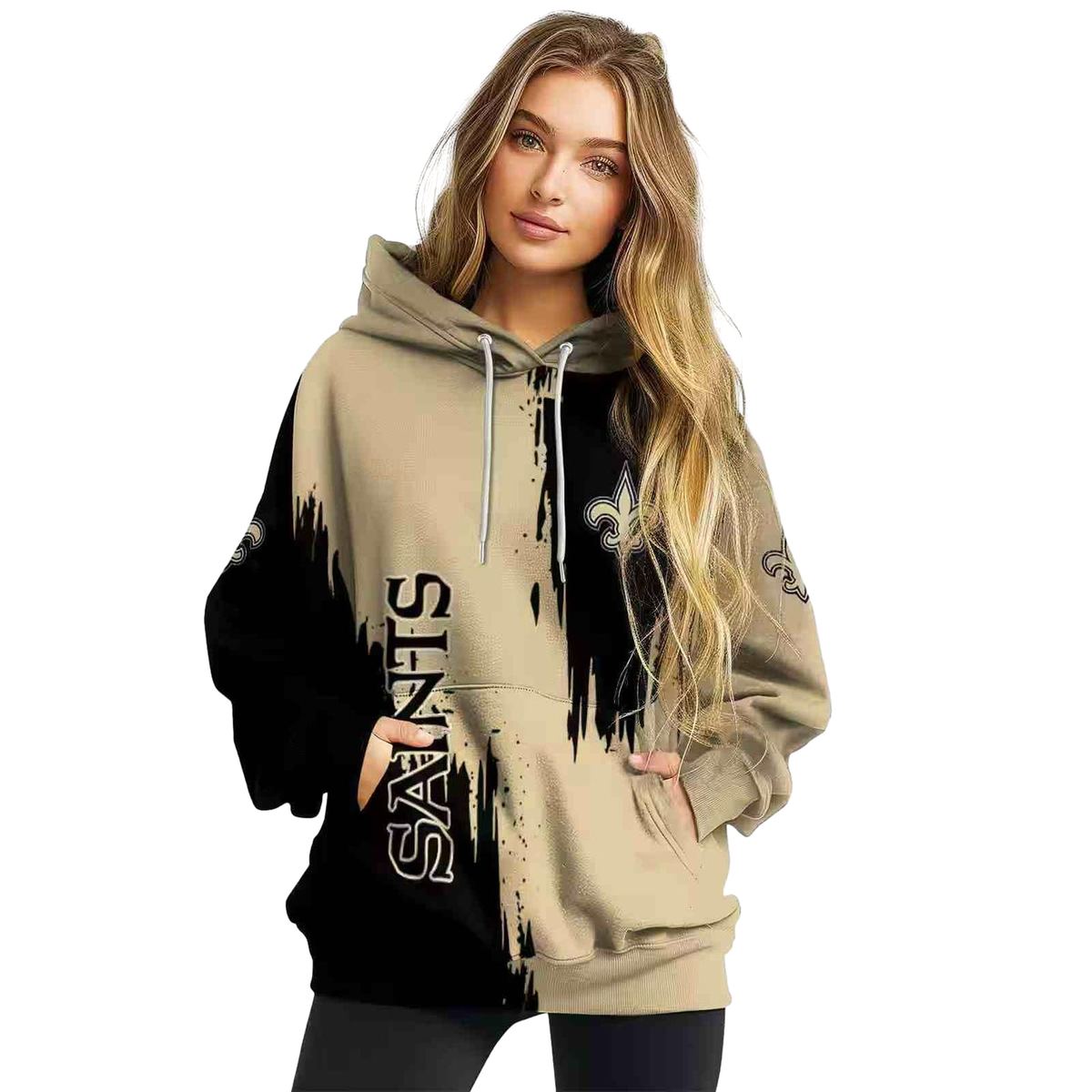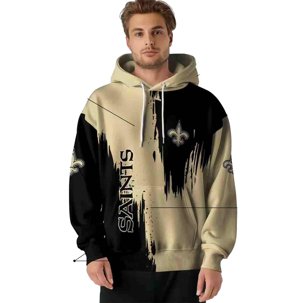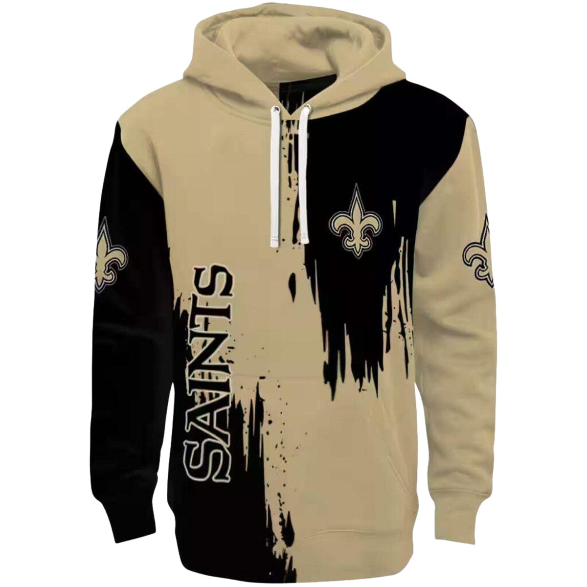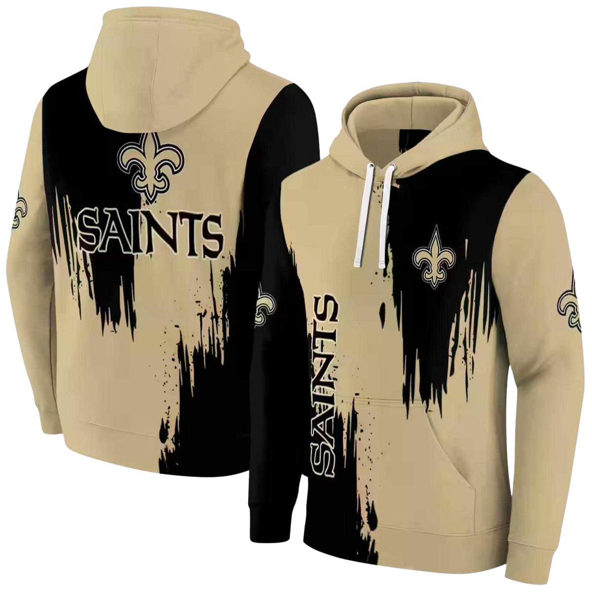 New Orleans Saints Splatter Effect Gold And Black AOP Hoodie