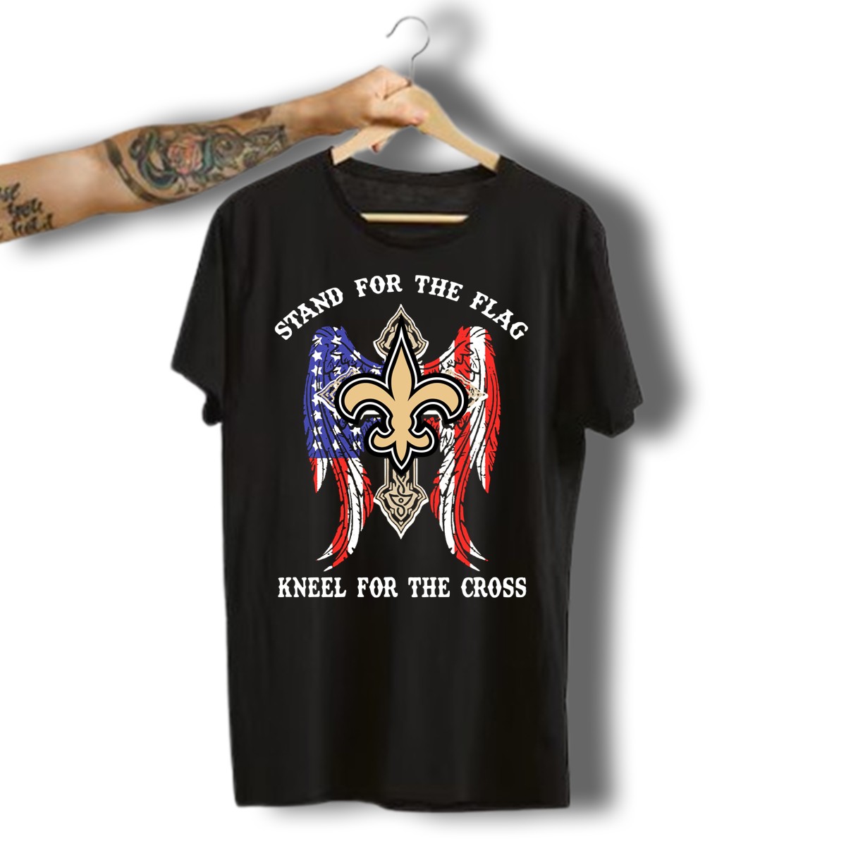 Show your unwavering support for the New Orleans Saints with our “Stand for the Flag, Kneel for the Cross” T-shirt. This fan-made design is perfect for die-hard Saints fans who want to express their passion on game day or at casual gatherings. Crafted for comfort and style, this shirt is ideal for all-season wear and will make a bold statement at themed events or daily outings.
