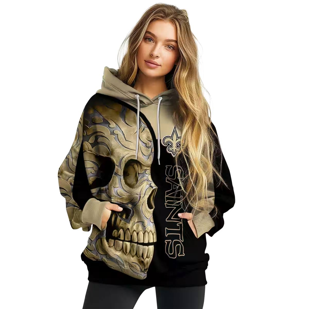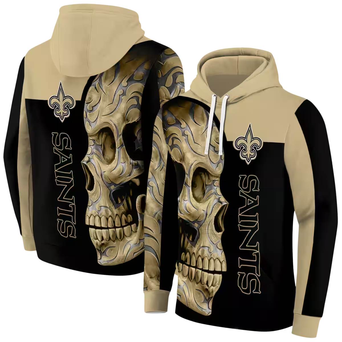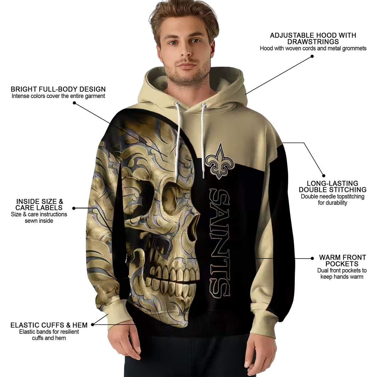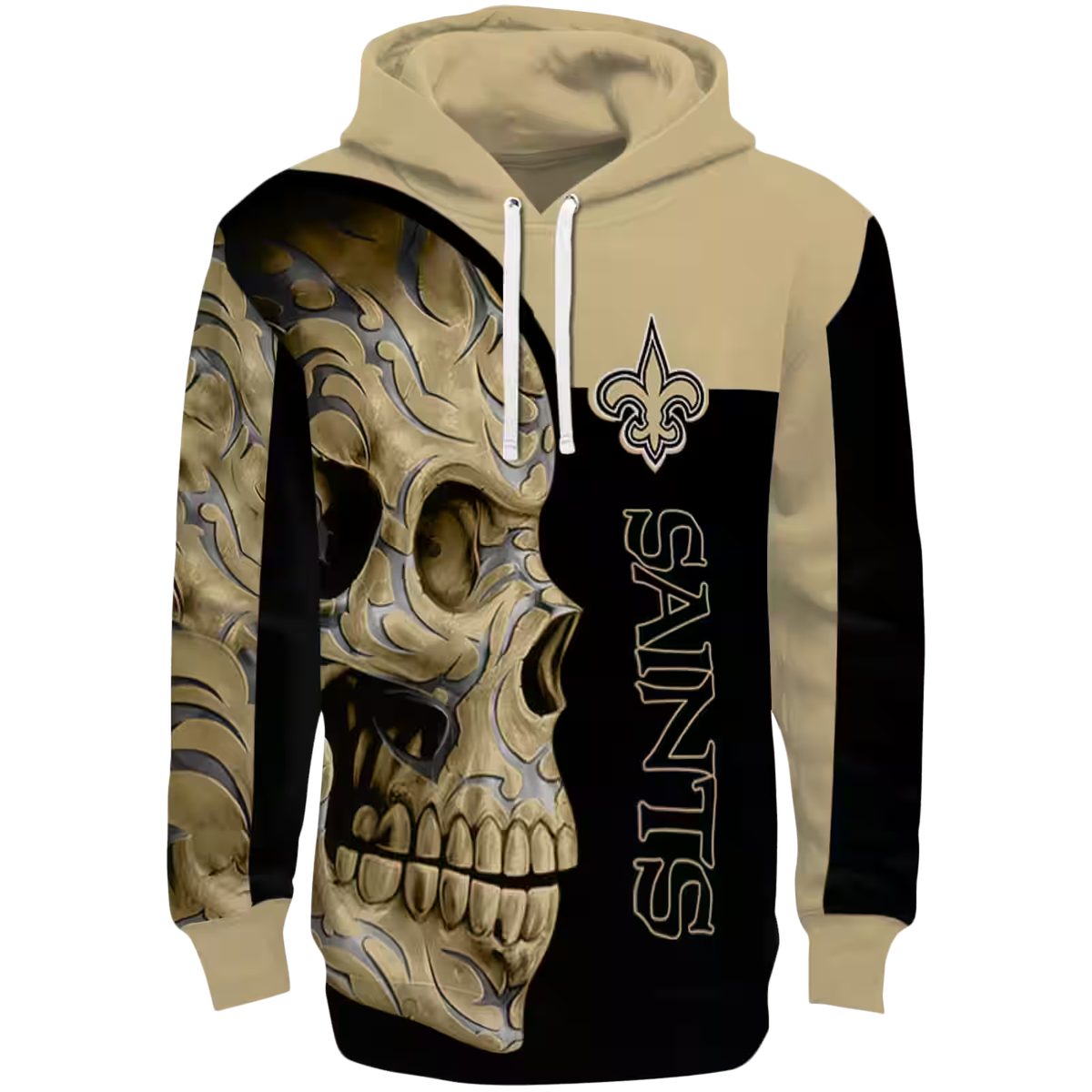 New Orleans Saints Tattoo Skull Motif Gold Black AOP Hoodie