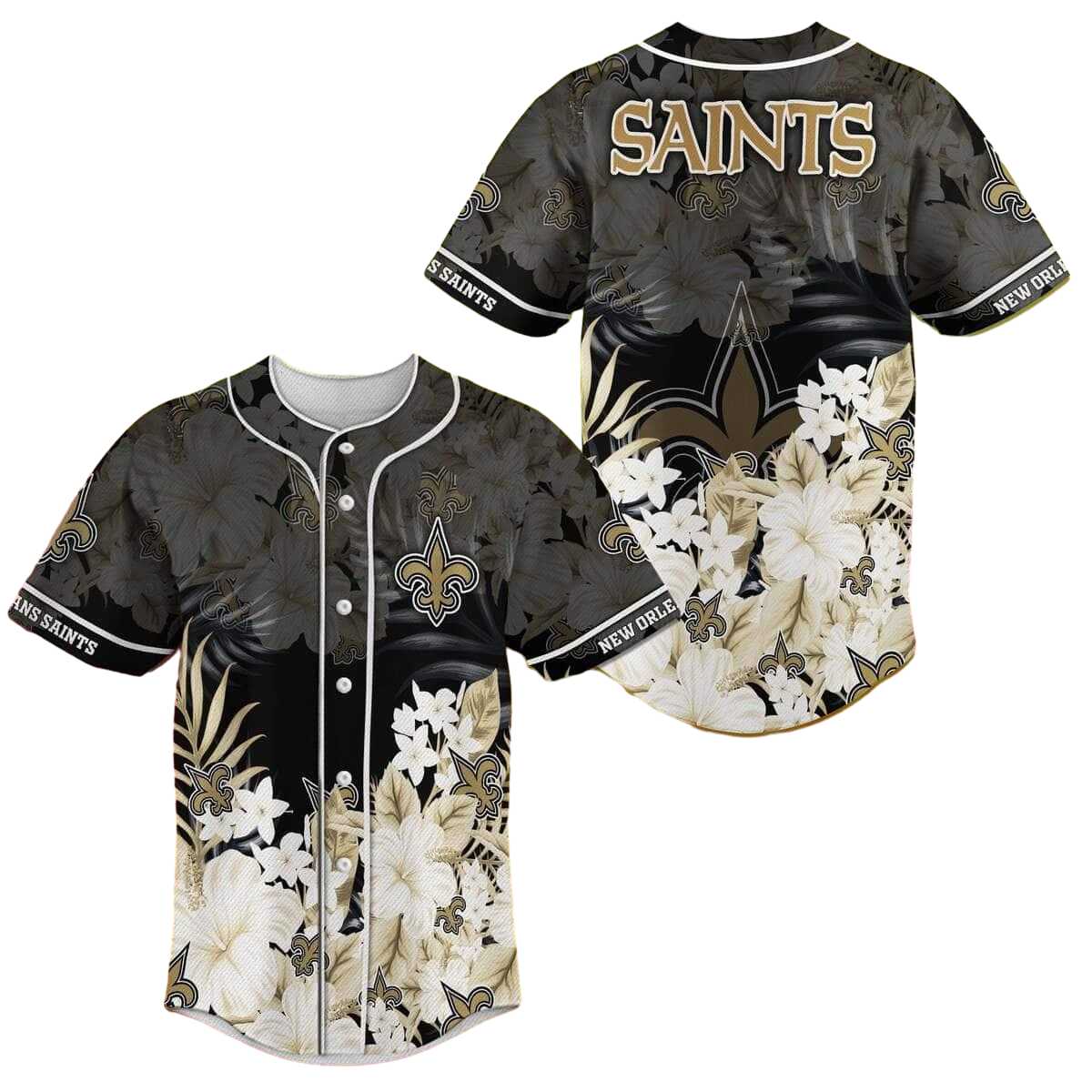 Get ready to elevate your game day style with our New Orleans Saints Tropical Flower Baseball Jersey! This vibrant and eye-catching jersey is perfect for fans and athletes alike, making it an ideal choice for sporting events, casual wear, or team uniforms. Show off your spirit and stand out in the crowd with this unique design!