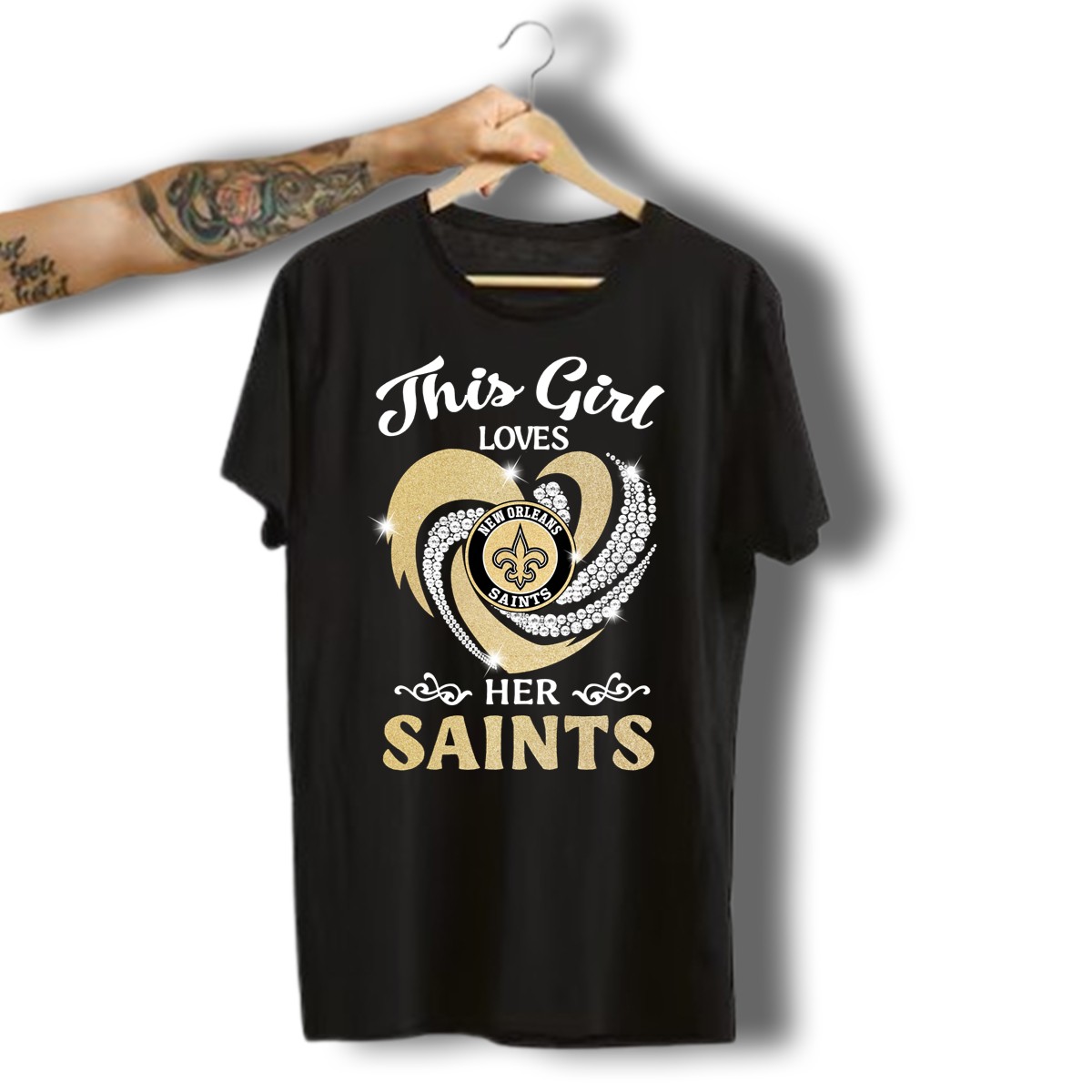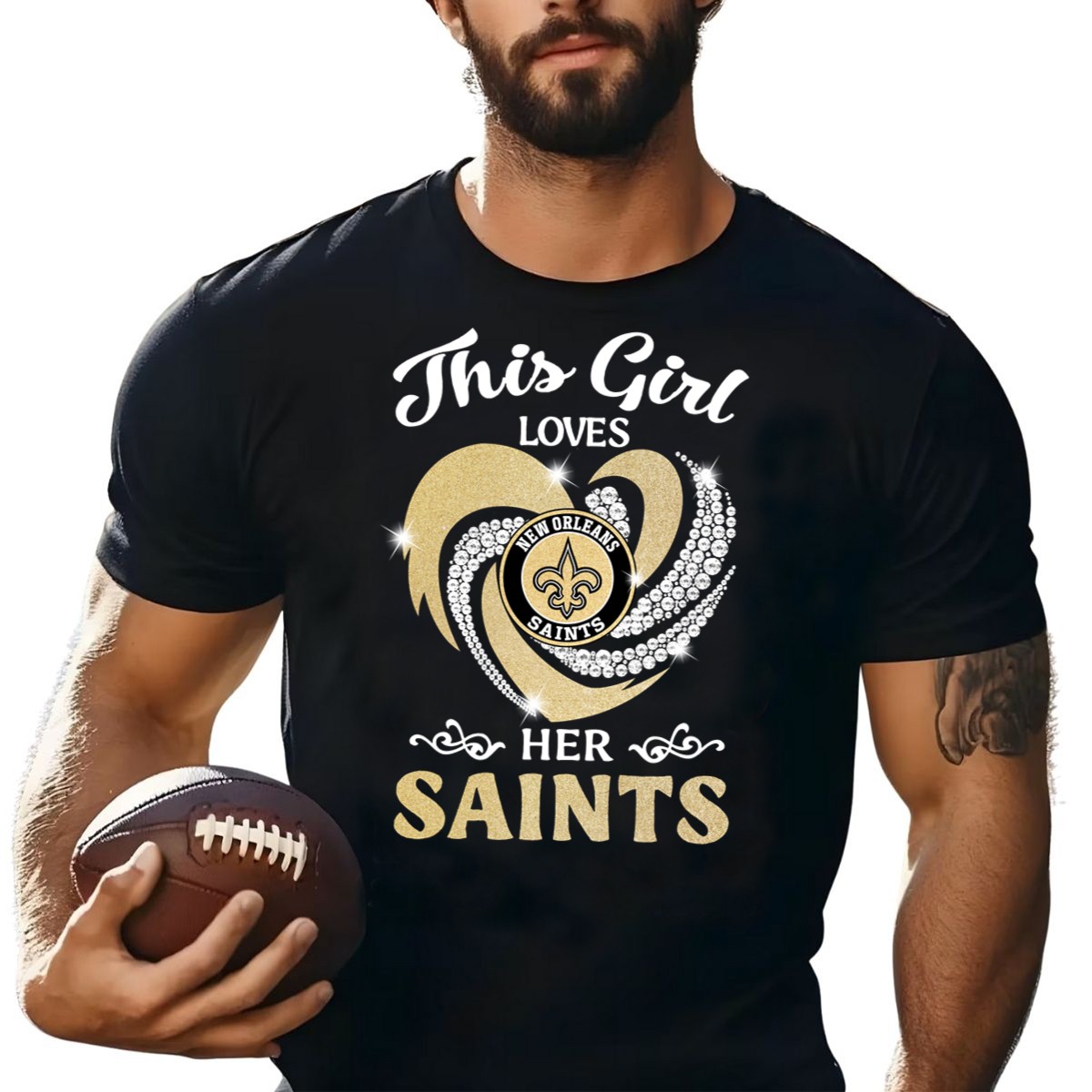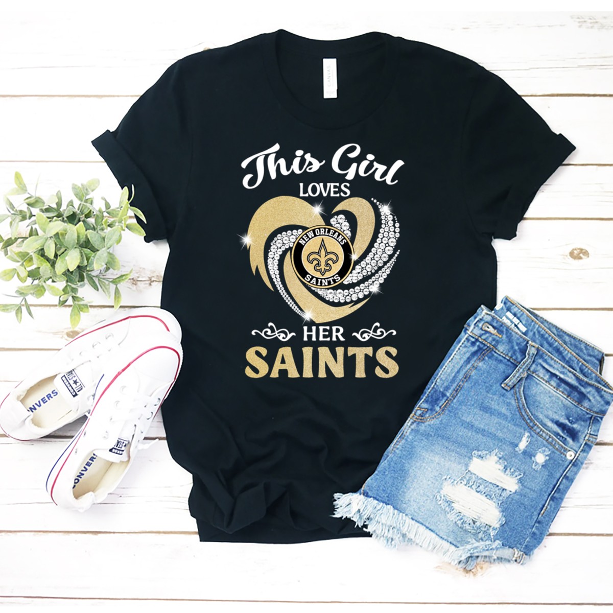 Show your unwavering support for the New Orleans Saints with our “Vortex Diamond Heart This Girl Loves Her Saints” T-shirt! Perfect for the dedicated fan, this stylish and comfortable tee is ideal for casual outings, themed events, or simply cheering from the comfort of your home. Made with love and printed right here in the USA, this shirt is a must-have for any Saints enthusiast looking to express their pride in a unique way.