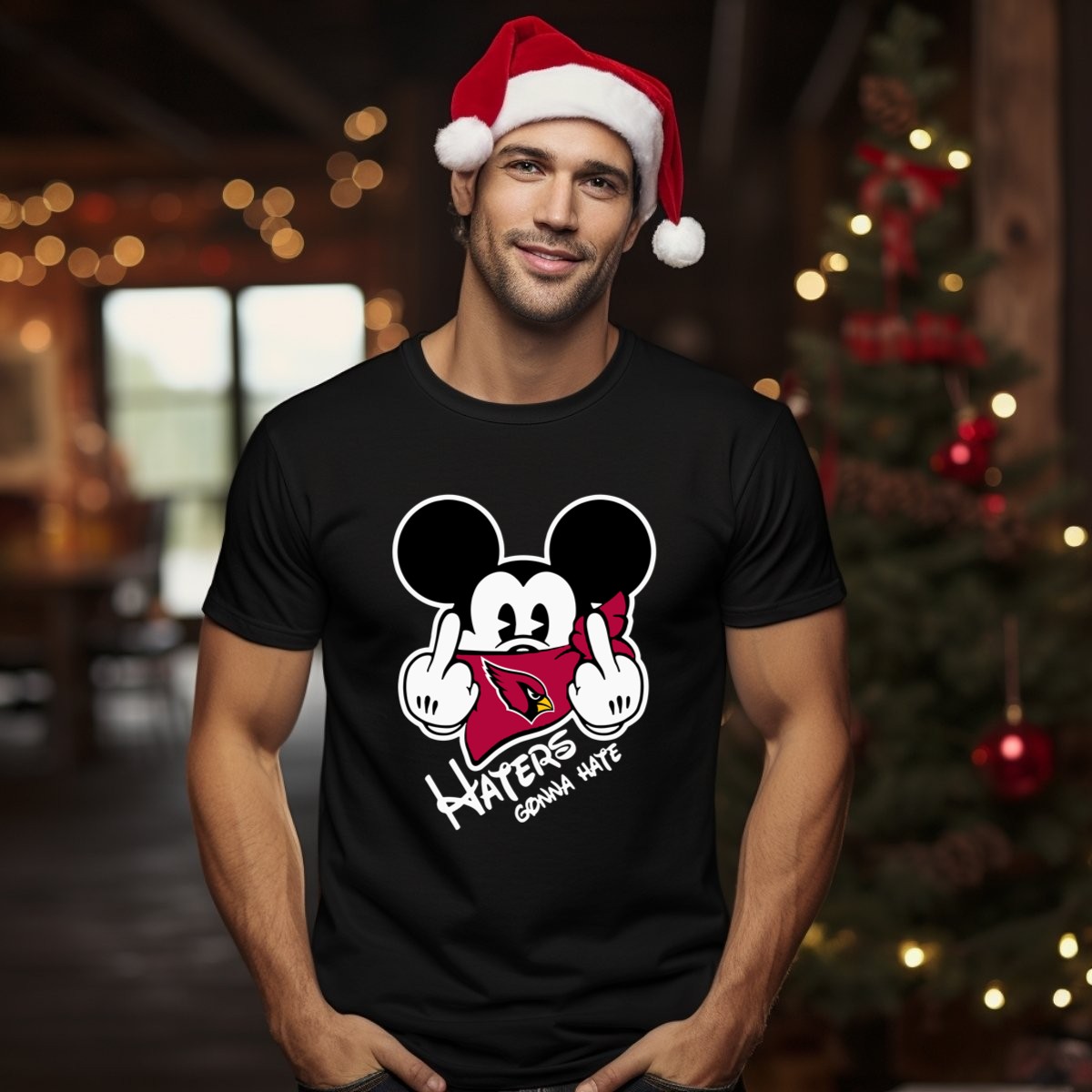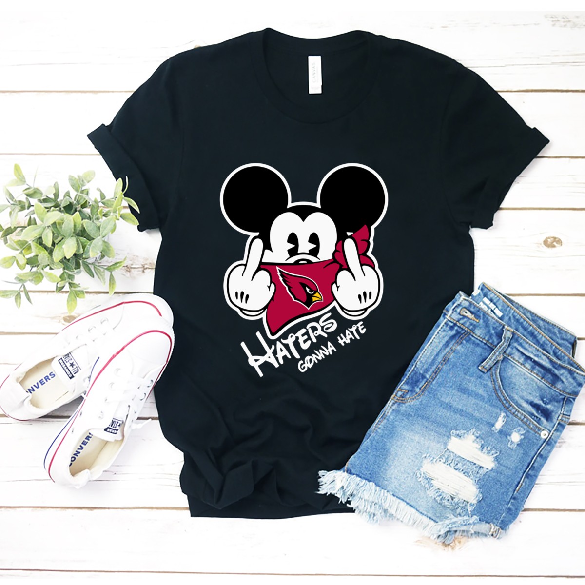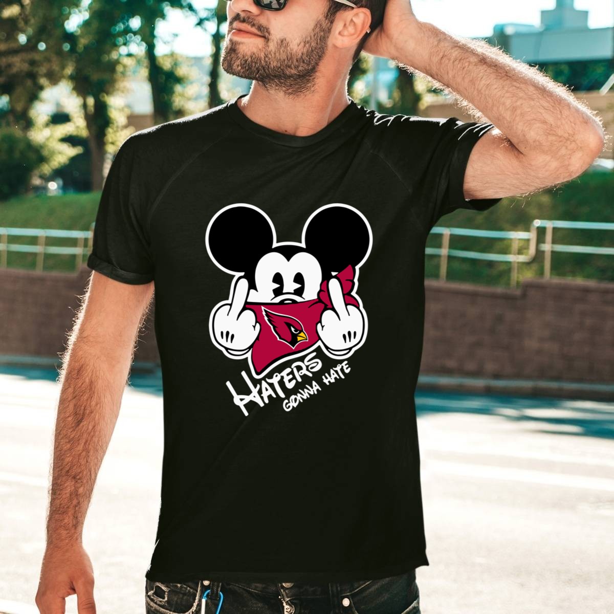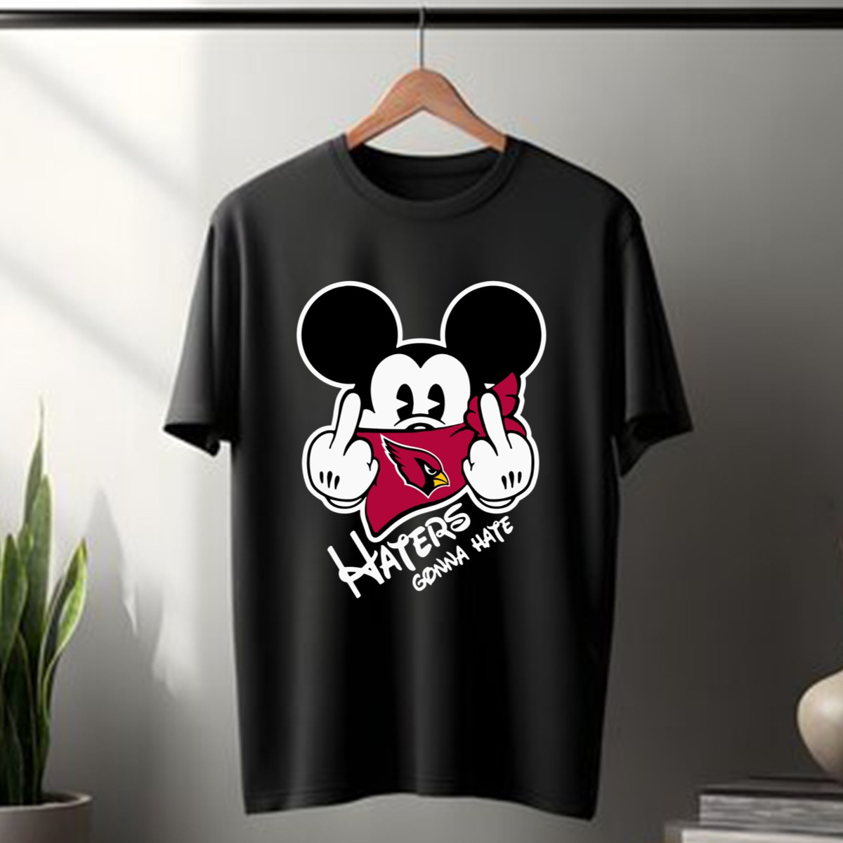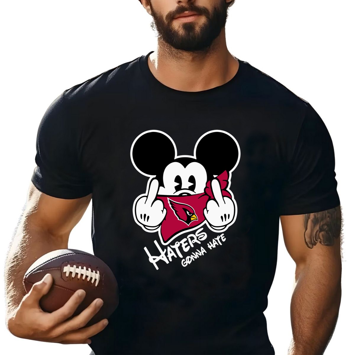 Show your team spirit with a twist in the NFL Arizona Cardinals Haters Gonna Hate Mickey Mouse T-Shirt! Perfect for die-hard fans and Disney lovers alike, this fun and playful design makes a bold statement while celebrating your love for the Cardinals. Ideal for casual outings, themed events, or just lounging at home, this shirt is a fantastic way to express your personality and support your favorite team. Made for comfort and style, this fan-made shirt is proudly printed in the USA.
