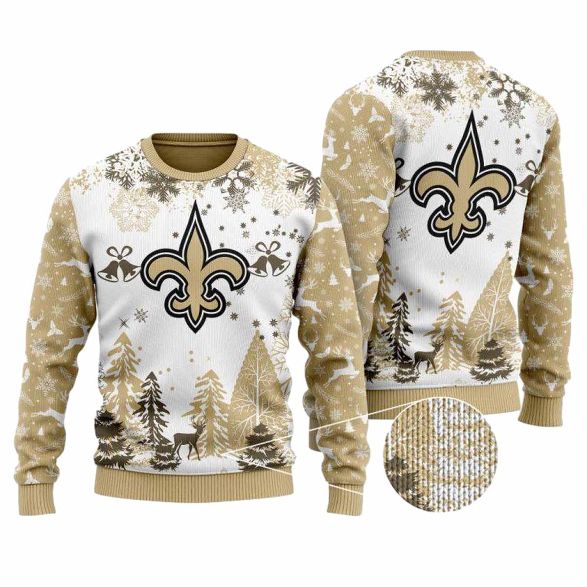 NFL New Orleans Saints White And Gold Ugly Christmas Sweater