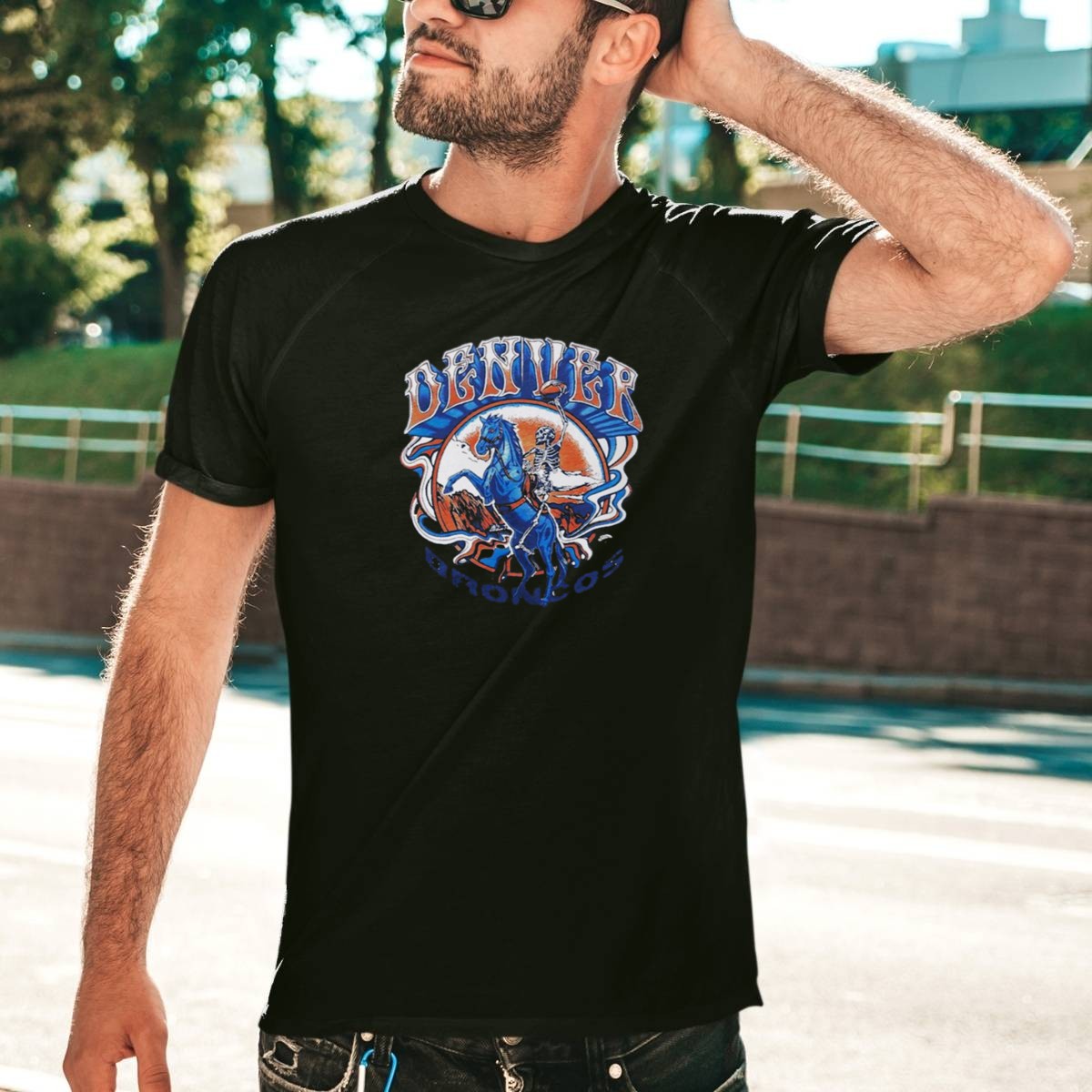 Embrace your love for both football and music with our NFL x Grateful Dead x Denver Broncos Skeleton Riding Horse T-Shirt! This unique fan-made design is perfect for die-hard Broncos supporters and Grateful Dead enthusiasts alike. Ideal for casual outings, themed events, or just showing off your team spirit, this shirt combines comfort with a standout graphic that celebrates your passions. Printed right here in the USA, it’s a must-have for any true fan looking to make a statement.