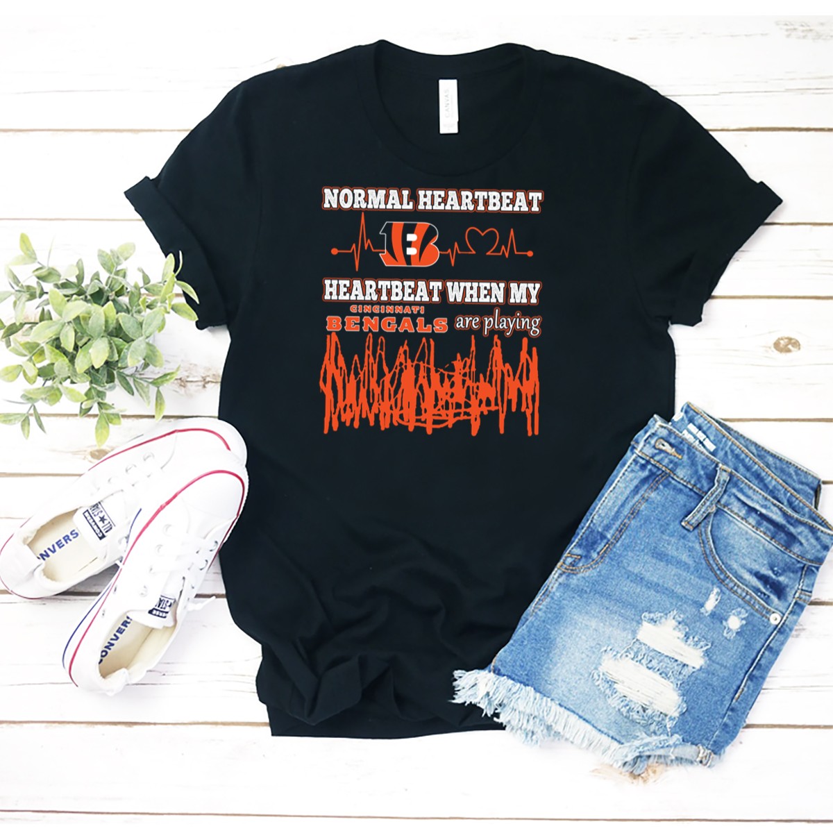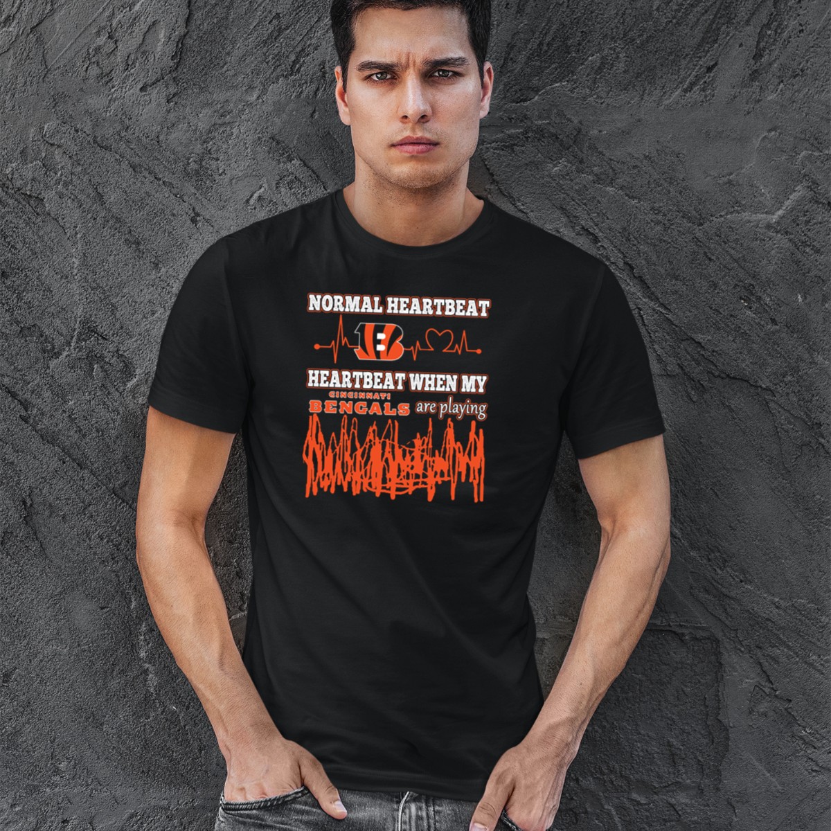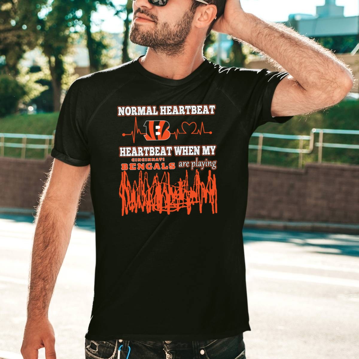 Show off your passion for the Cincinnati Bengals with this eye-catching “Normal Heartbeat” T-shirt! Perfect for die-hard fans, this shirt is designed for casual wear, themed events, or just a cozy day at home while cheering for your favorite team. Made with a unique fan-made design, printed right here in the USA, this T-shirt combines style and comfort, making it a must-have for any Bengals supporter.