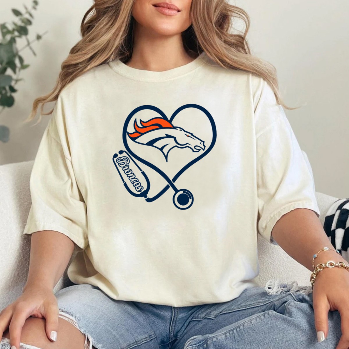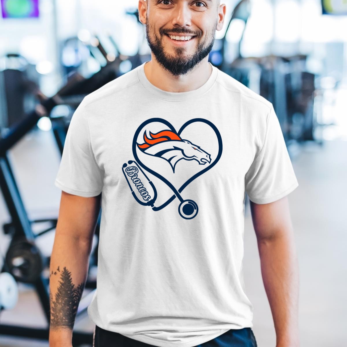 Show your love for the Denver Broncos while celebrating the incredible work of nurses with our Nurse Broncos Heart Stethoscope T-Shirt. This fan-made design is perfect for healthcare professionals and Broncos fans alike, making it an ideal choice for casual wear, themed events, or just daily outings. With its comfortable fit and unique graphic, this shirt allows you to proudly display your team spirit while enjoying a soft and breathable fabric.