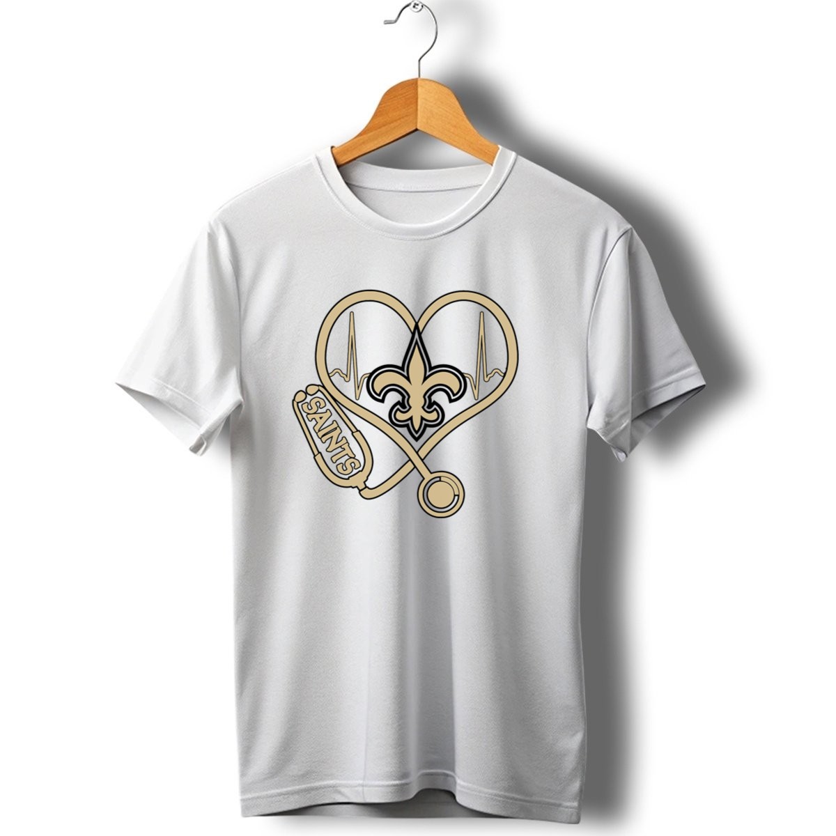 Show your love for nursing and your passion for football with our Nurse Love Saints Heartbeat Fleur De Lis T-Shirt. Perfect for nurses who are also devoted fans, this shirt combines comfort and style, making it an ideal choice for casual outings, themed events, or simply showcasing your team spirit every day. With a unique fan-made design printed right here in the USA, this shirt is a must-have for anyone looking to celebrate their dual passions.