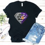 Show off your love for two iconic teams with this fan-made Oakland Raiders and Los Angeles Lakers Superman T-shirt! Perfect for sports enthusiasts and casual wear, this shirt combines the boldness of superhero culture with the passion of your favorite franchises. Ideal for themed events, game days, or just lounging around, this unique shirt ensures you stand out while celebrating your fandom in style.