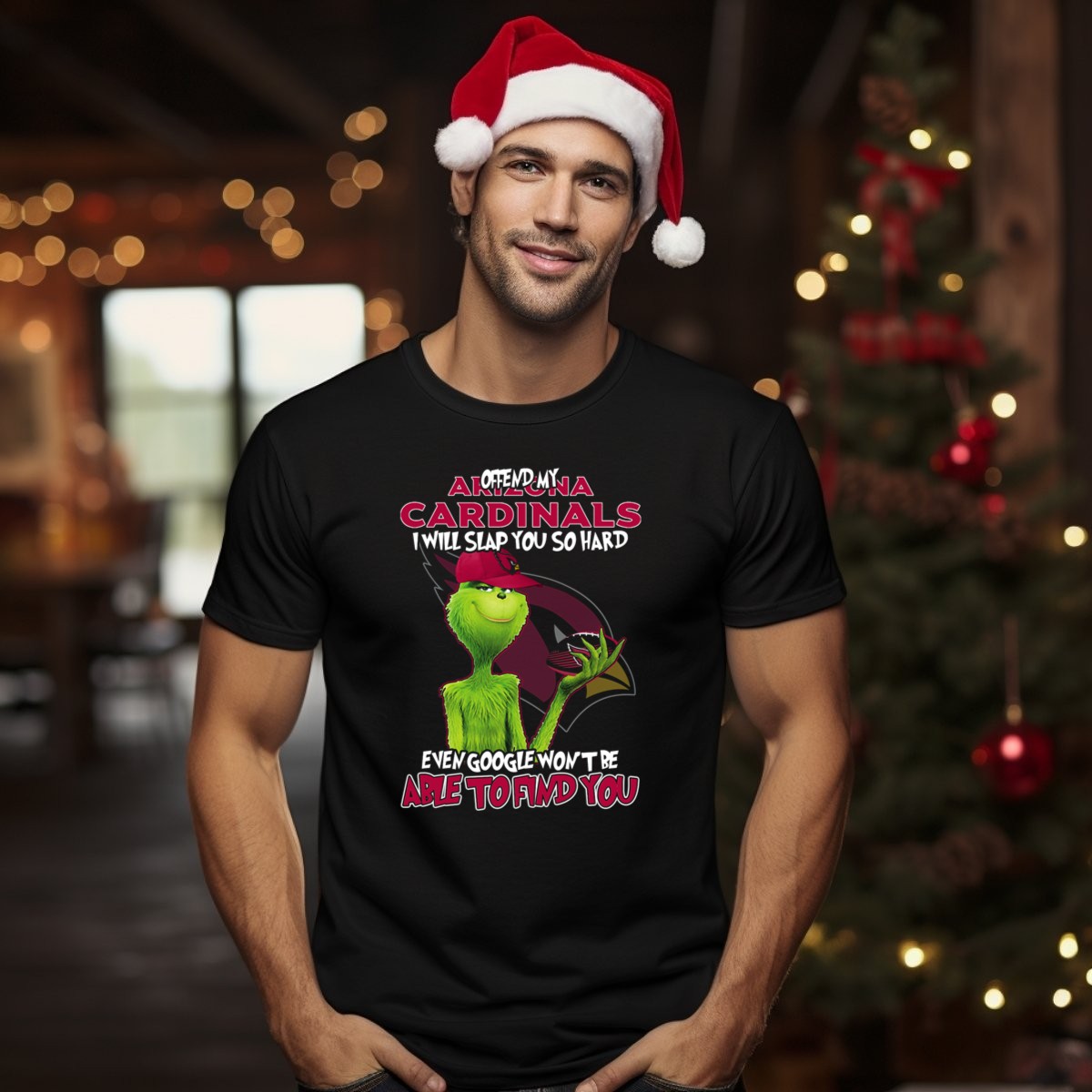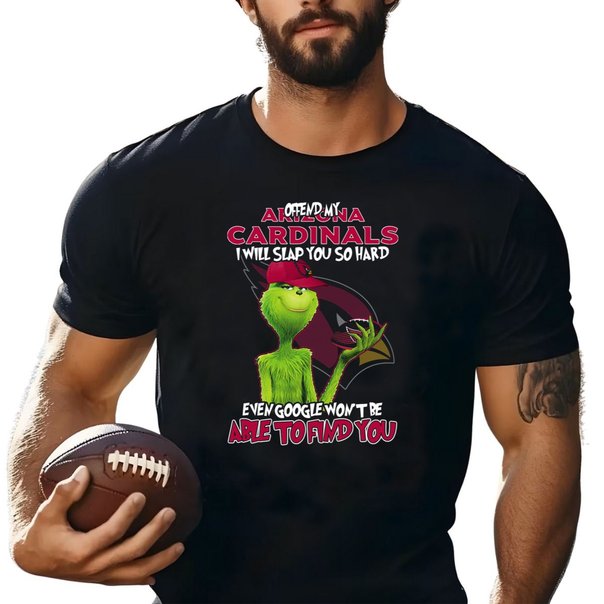 Show off your love for the Arizona Cardinals with our “Offend My Arizona Cardinals Grinch Even Google Won’t Be Able to Find You” T-shirt! This fun and playful design is perfect for die-hard fans who want to make a statement during casual outings, themed events, or just hanging out with friends. Made with care in the USA, this shirt combines comfort and style, making it a unique addition to any fan’s wardrobe.