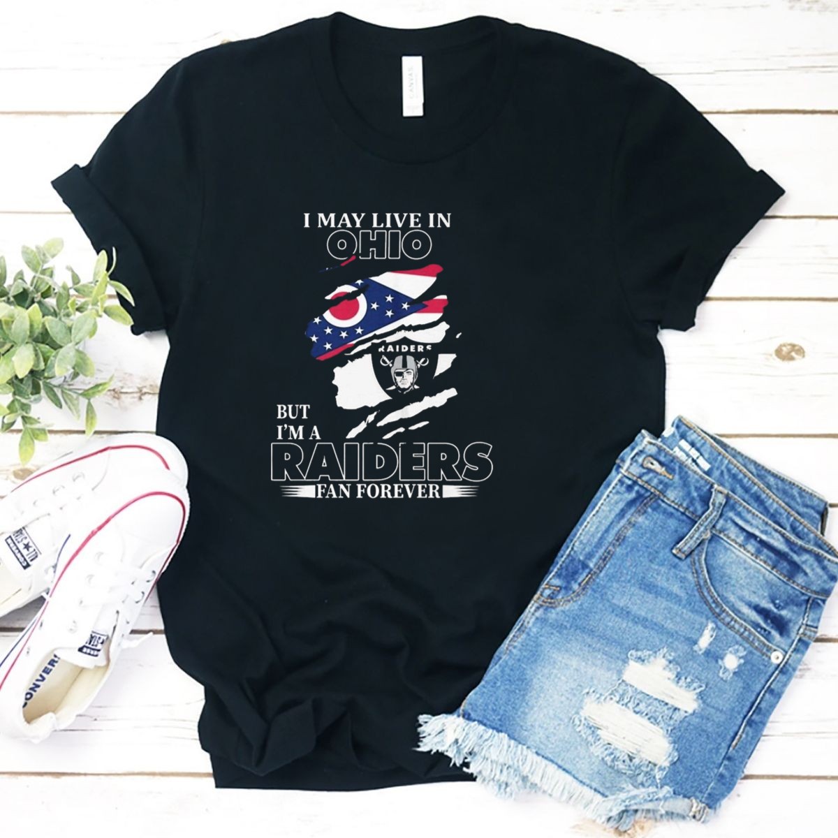 Show your love for the Las Vegas Raiders while embracing your Ohio roots with this unique fan-made graphic T-shirt! Perfect for die-hard fans and casual wearers alike, this shirt features a striking design that combines the Ohio flag with the Raiders logo, making it an ideal choice for game days, themed events, or just lounging around. Crafted for comfort and style, this classic-fit tee is a must-have for anyone who proudly supports their team from afar.