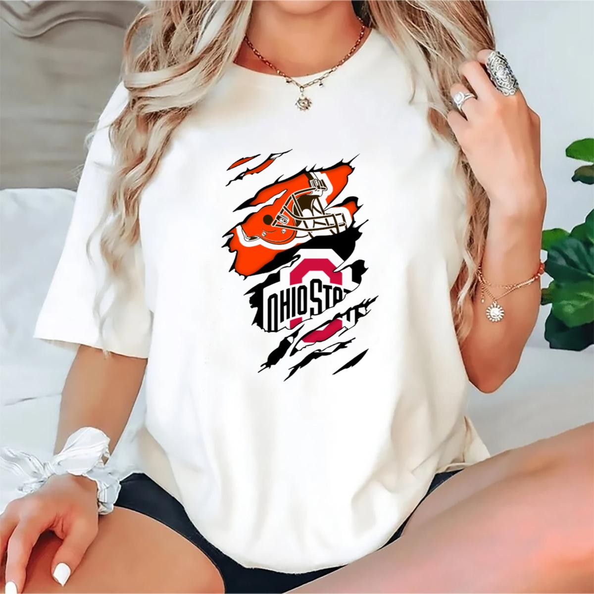 Ohio State Buckeyes Cleveland Browns Helmet Fusion T-Shirt