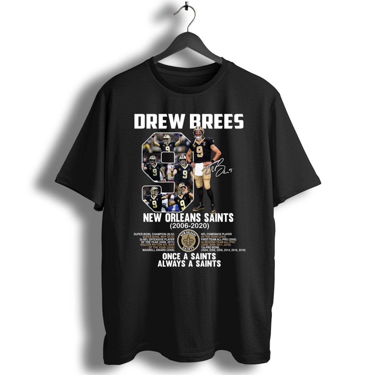 Celebrate your unwavering support for the New Orleans Saints with our “Once A Saints Always A Saints” Drew Brees Signature T-shirt. This fan-made design pays homage to the legendary quarterback, perfect for die-hard fans who want to showcase their pride at casual outings, themed events, or during game day gatherings. Crafted for comfort and style, this shirt is a must-have for anyone looking to honor the legacy of Drew Brees and the spirit of the Saints.