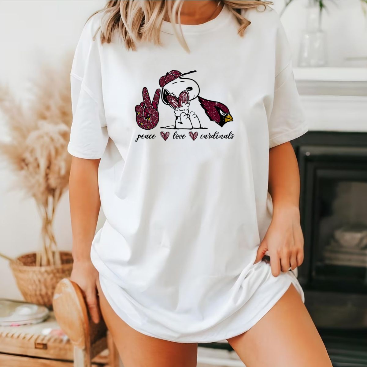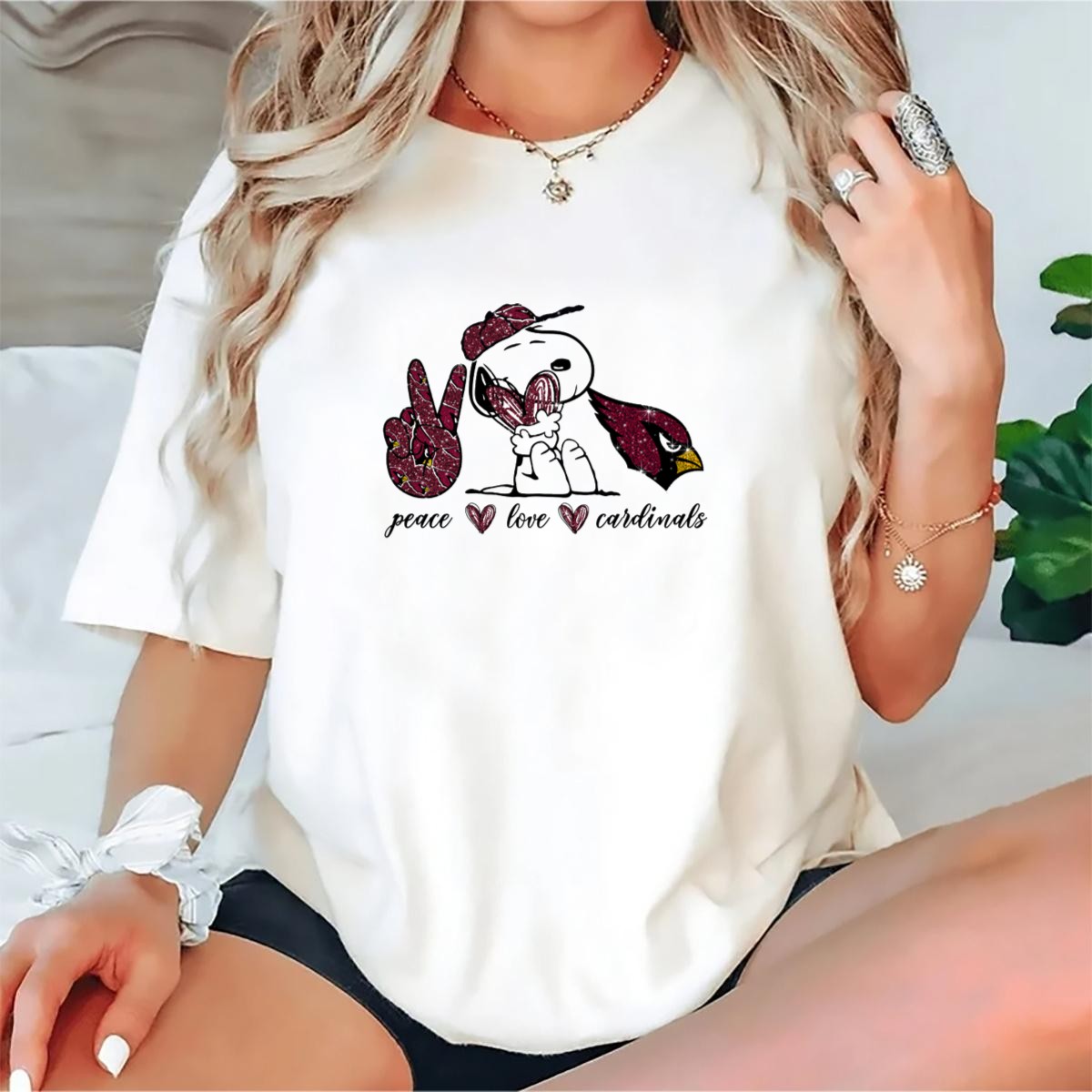 Peace Love Arizona Cardinals Snoopy Fan T-Shirt