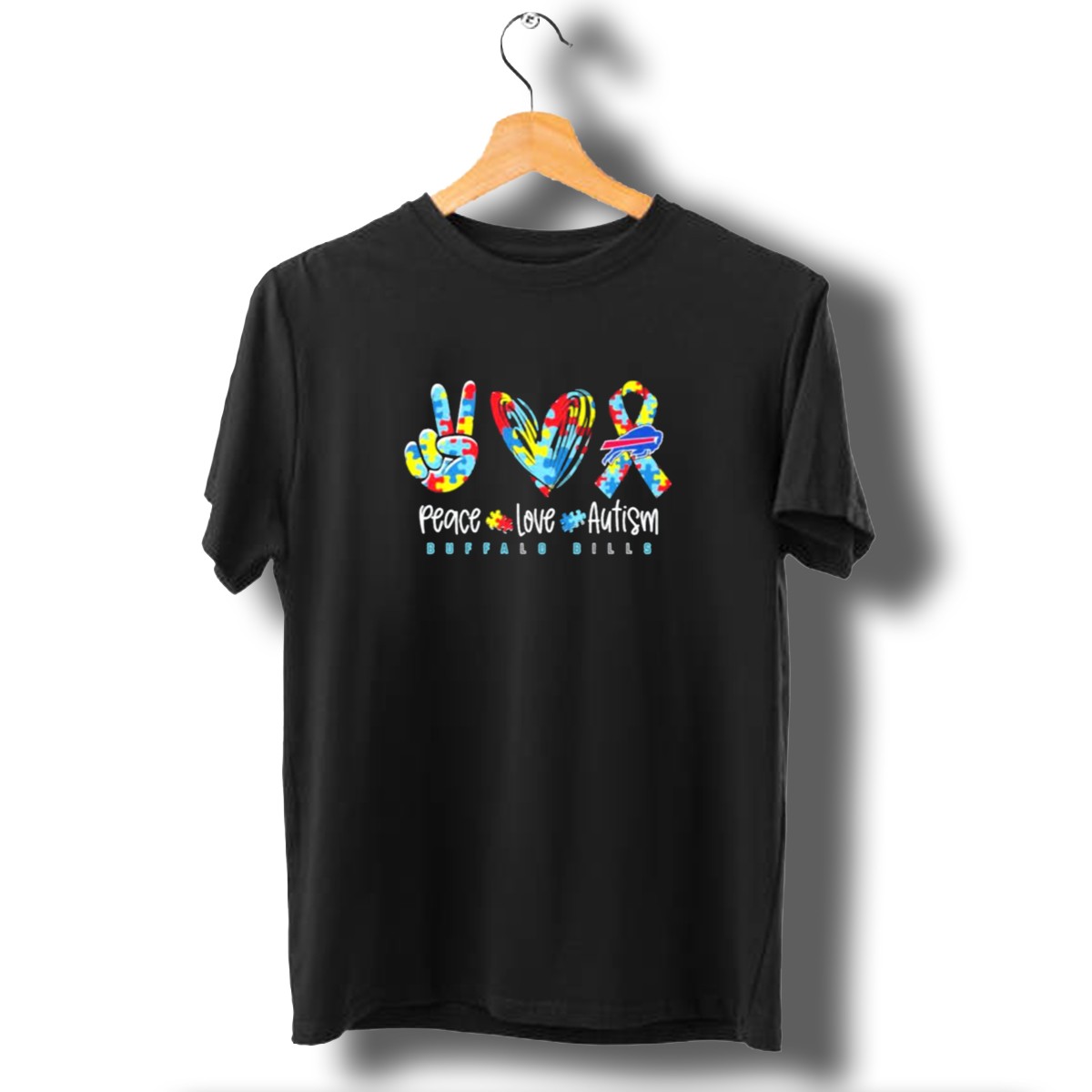 Celebrate your passion for the Buffalo Bills and support autism awareness with our “Peace Love Autism” graphic T-shirt. Designed for fans who want to express their love for both football and meaningful causes, this soft and breathable shirt is perfect for casual outings, themed events, or daily wear. The unique fan-made design, proudly printed in the USA, makes it a standout piece in any wardrobe, allowing you to show your support with style.